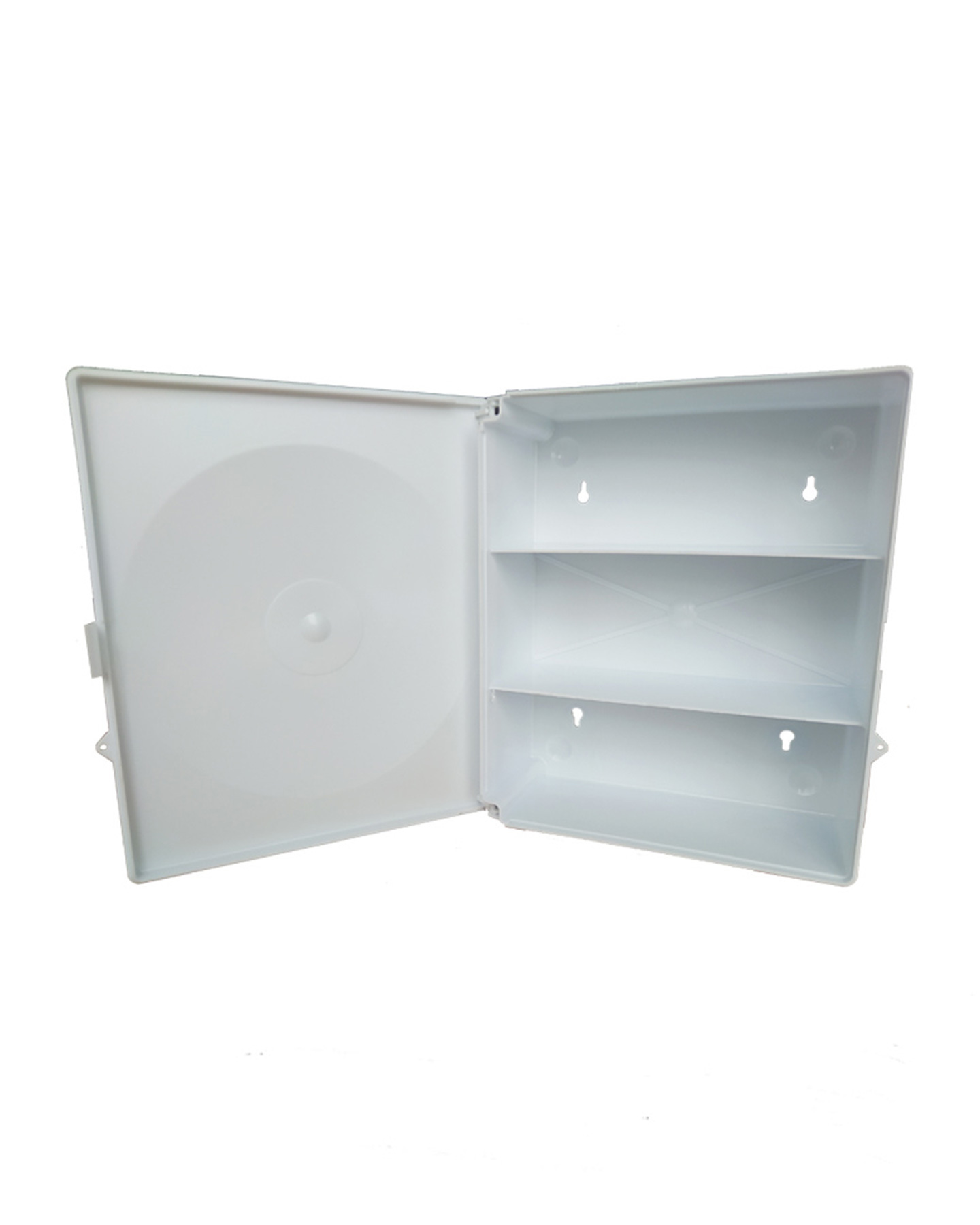 Для оснащения промышленных предприятий — 30 человек. Пластиковый шкаф: 250×300×110 мм Состав: 1 Анальгин, табл. 500 мг №10 - 2 уп. 2 Ацетилсалициловая кислота, табл. 500 мг №10 - 2 уп. 3 Гипотермический (охлаждающий) пакет - 2 шт. 4 Дротаверин (но-шпа), табл. 40 мг №10 - 1 уп. 5 Жгут кровоостанавливающий 1 шт. 6 Бинт стерильный 5 м × 10 см или 5 м × 7 см - 2 шт. 7 Бинт нестерильный 5 м × 10 см - 2 шт. 8 Бинт нестерильный 5 м × 5 см - 2 шт. 9 Салфетка атравматическая антимикробная 7 × 10 см, №1 - 2 уп. 10 Лейкопластырь бактерицидный 1,9 см x 7,2 см - 10 уп. 11 Салфетки стерильные кровоостанавливающие 6 × 10 см №3 - 1 уп. 12 Бриллиантового зеленого раствор 1%, 10 мл - 1 фл. 13 Лейкопластырь 1 × 250 см - 1 уп. 14 Бинт эластичный трубчатый медицинский нестерильный №1, 3, 6 - по 1 шт. 15 Вата нестерильная, 50 г - 2 уп. 16 Сульфацила натрия раствор 20%, 1 мл №2 тюбик-капельница или 5 мл флакон-капельница - 1 уп. / 1 фл. 17 Перекиси водорода раствор 3%, 40 мл - 1 фл. 18 Линимент синтомицина 5% или 10%, 25 г - 1 туб. 19 Нитроглицерин, капс. 0,5 мг №20 или табл. 0,5 мг №40 - 1 уп. 20 Валидол, табл. 60 мг №6 или №10 - 3 уп. 21 Устройство для проведения искусственного дыхания “Рот-Устройство-Рот” - 1 шт. 22 Аммиака раствор 10%, 40 мл - 1 фл. 23 Уголь активированный, табл. 250 мг №10 - 2 уп. 24 Корвалол, 15 мл - 1 фл. 25 Ножницы - 1 шт. 26 Стаканчик для приема лекарств - 1 шт. 27 Футляр для аптечки - 1 шт.