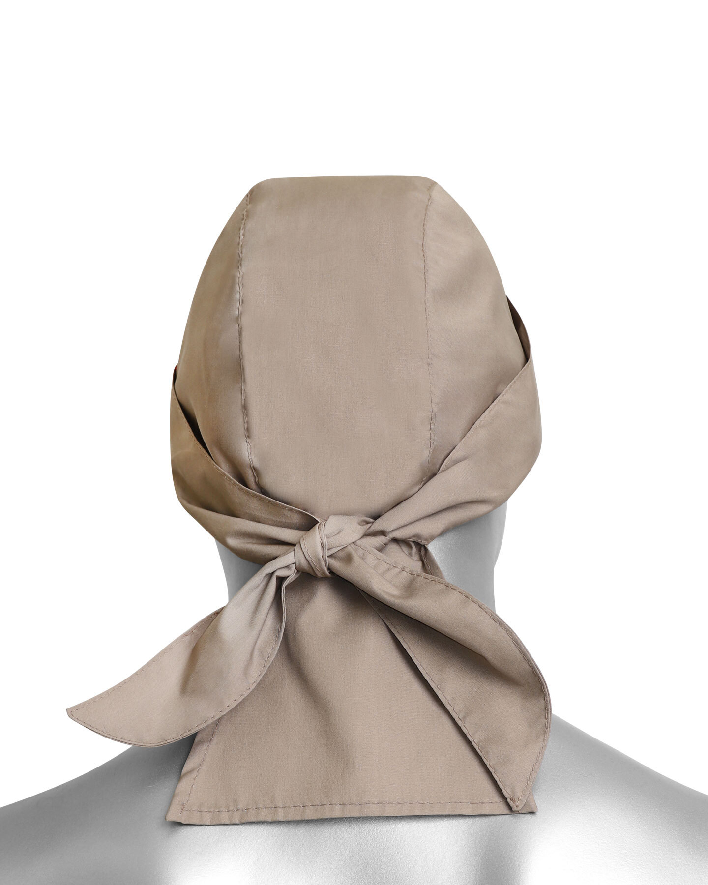Бандана состоит из двух боковых деталей, средней детали удлиненной в затылочной части, с околышем переходящим в затылочной части в завязки, для регулировки по объёму головы. Срезы затылочной части средней детали обработаны швом в подгибку с закрытым срезом. Ткань верха: «Ти-Си». ГОСТ 32118-2013