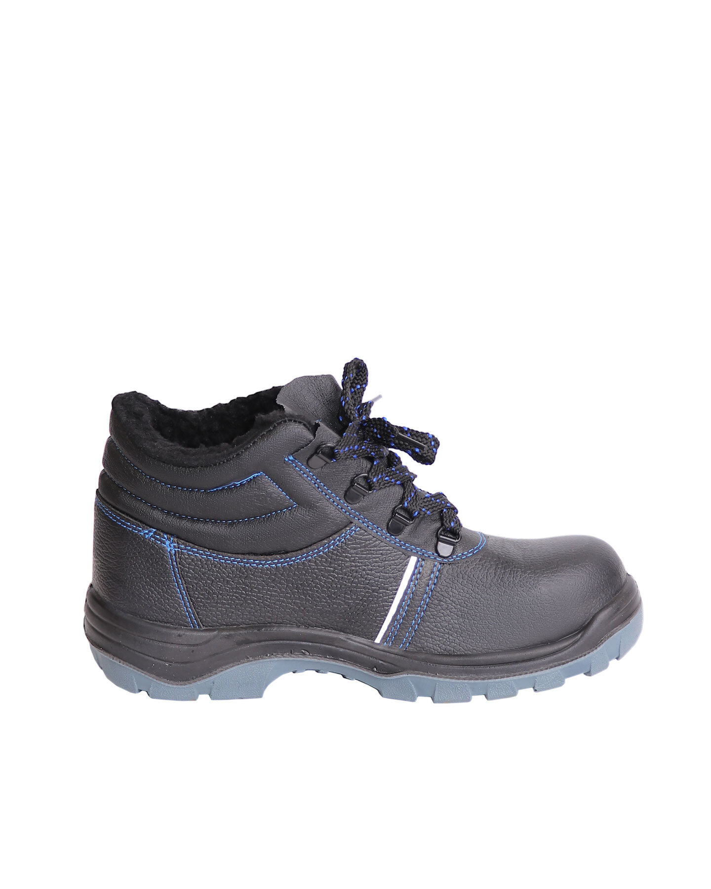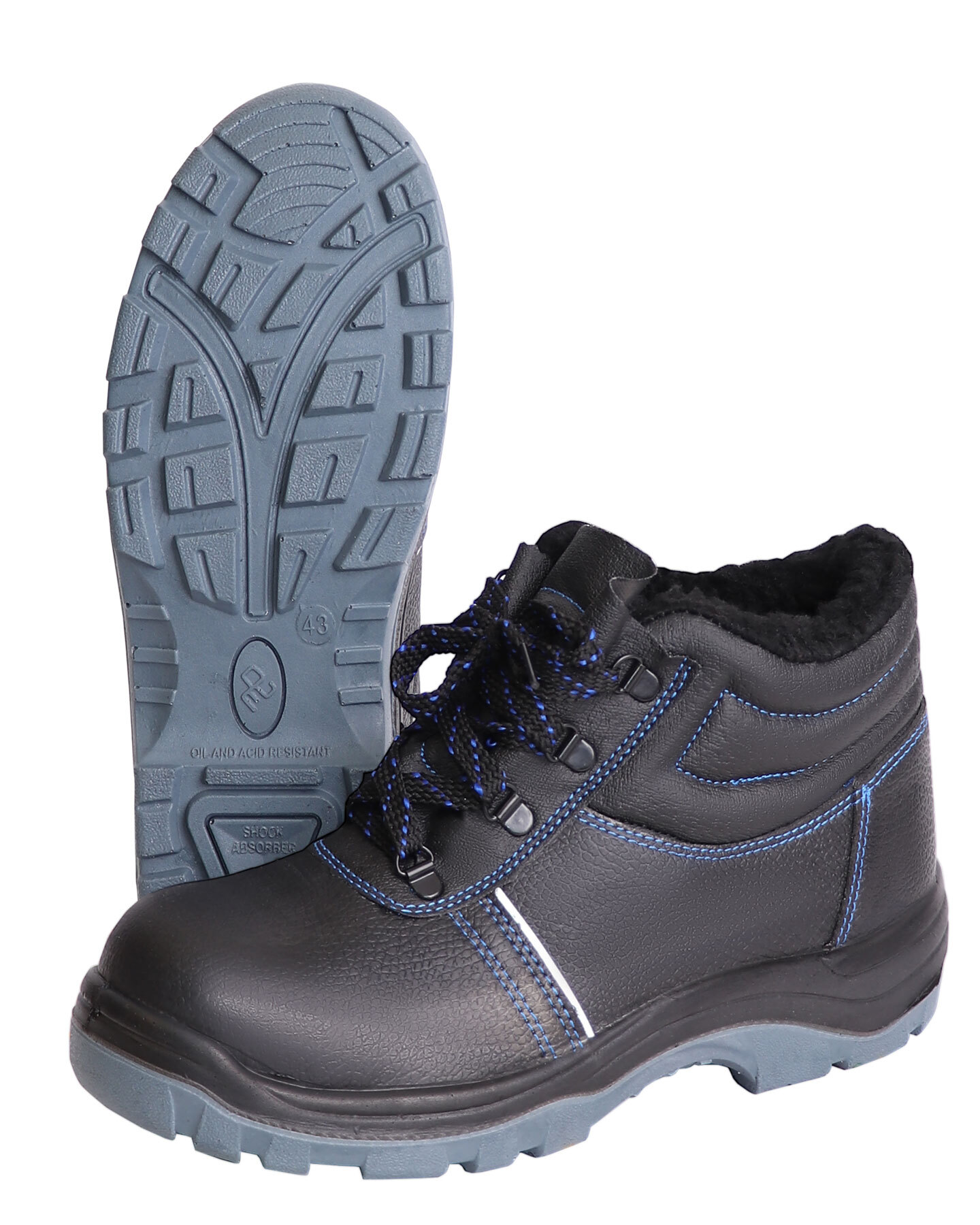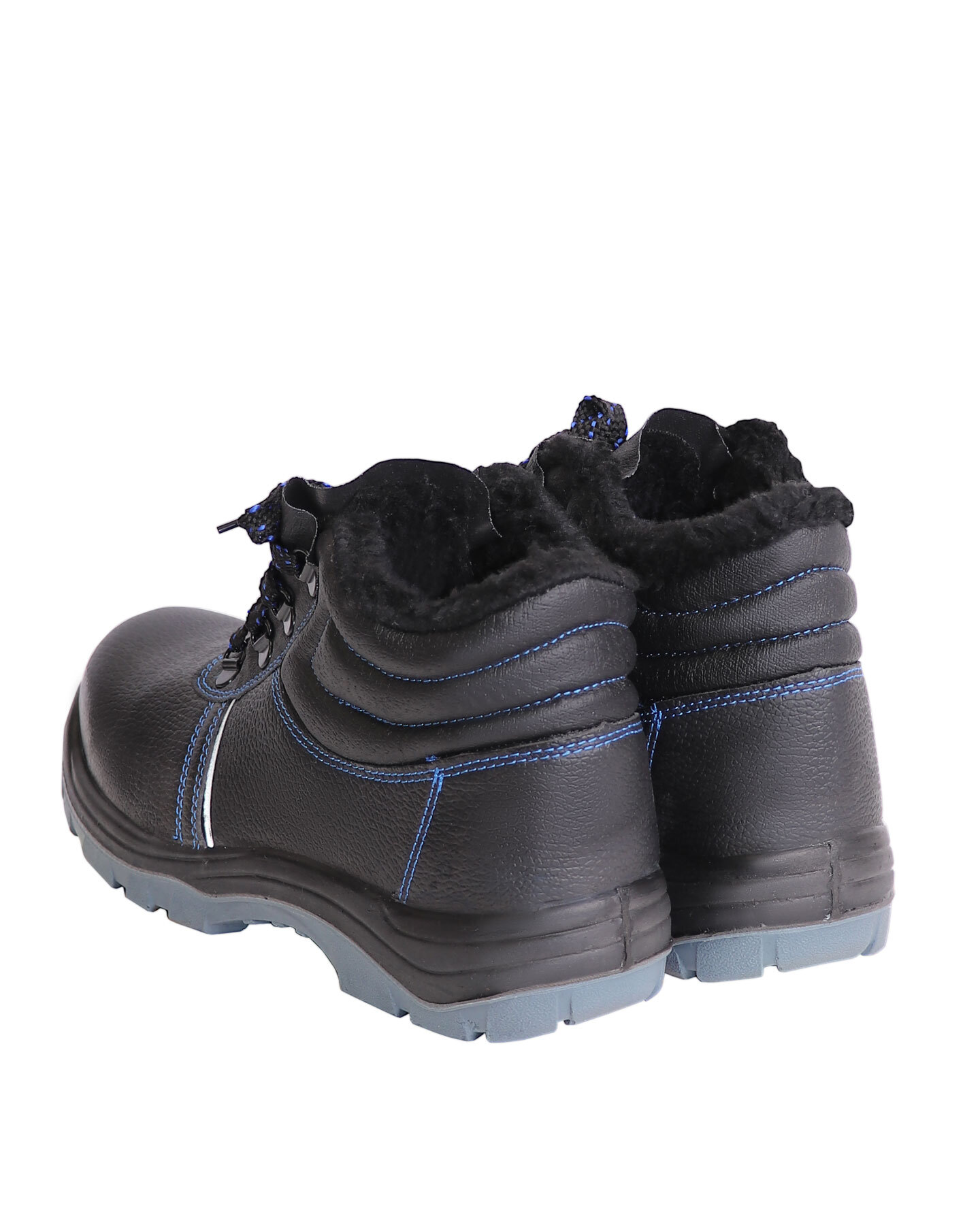 Ботинки из кожи c мягким кантом и глухим клапаном для защиты ног от общих производственных загрязнений в зимний период. Подкладка и вкладаня стелька изготовлены из искусственного меха. Шнуровка обеспечивает комфортную адаптивную посадку. Светоотражающие элементы повышают видимость работников в темное время суток, а также на неосвещенной территории. Двухслойная маслобензостойкая полиуретановая подошва литьевого метода крепления имеет вставку в пяточной части подошвы, обладающую амортизационными свойствами и способную гасить ударные нагрузки при ходьбе. Глубина протектора ходового слоя обеспечивает хорошую сцепляемость с поверхностями и препятствует скольжению за счет рельефа протектора. На этот товар имеется заключение Минпромторг.