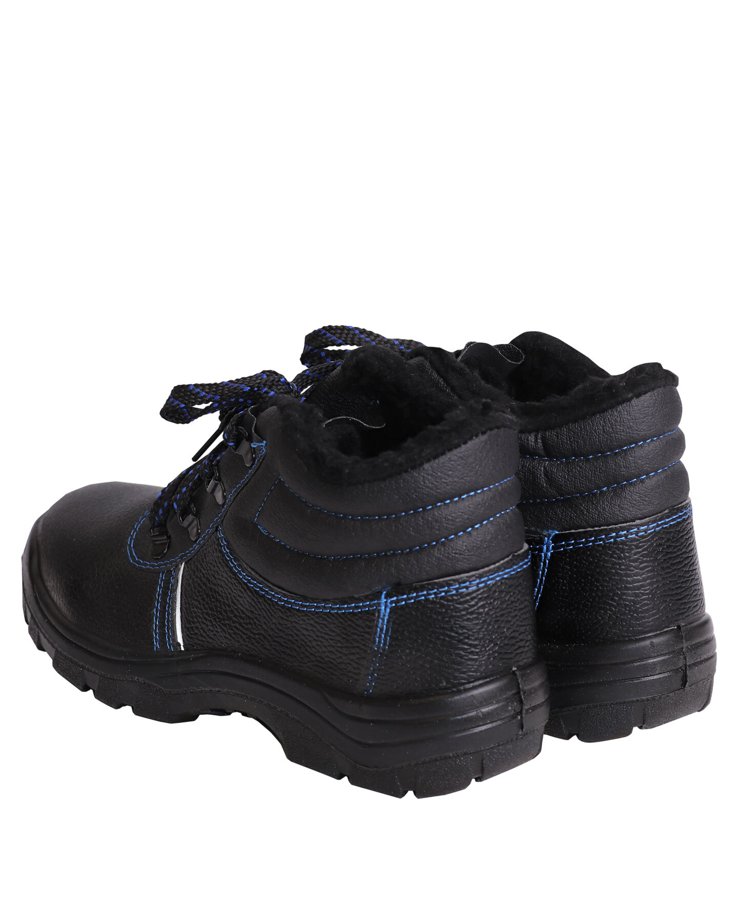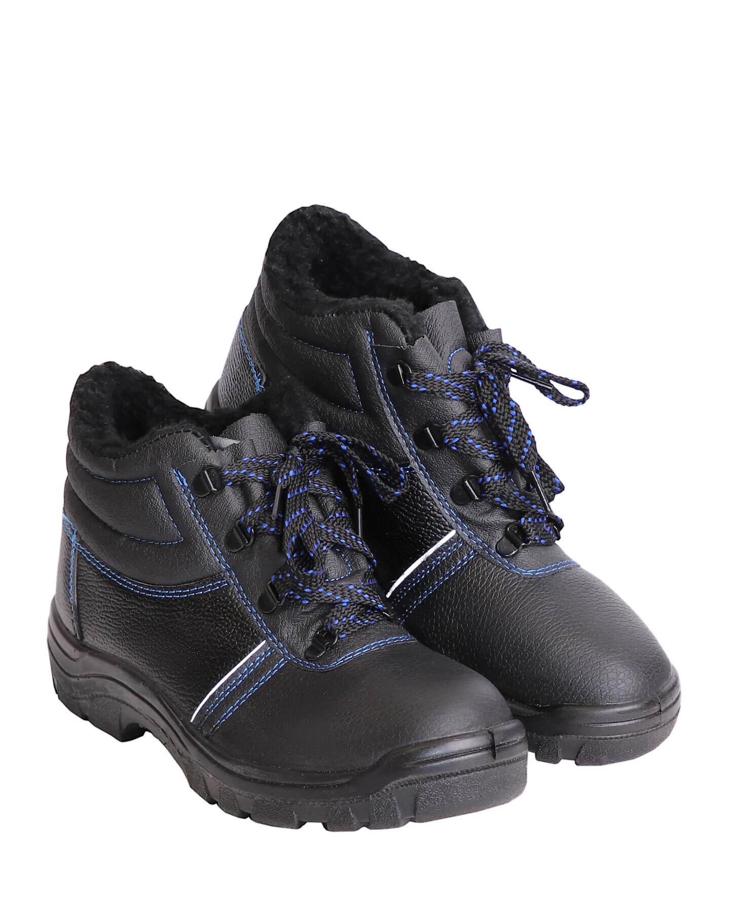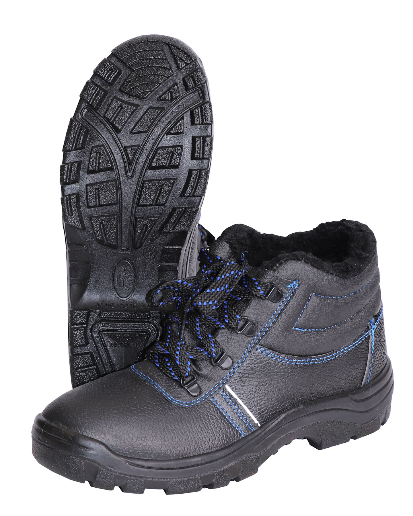 Ботинки из кожи c мягким кантом и глухим клапаном для защиты ног от общих производственных загрязнений в зимний период. Подкладка и вкладная стелька изготовлены из искусственного меха. Шнуровка, проходящая через металлические петли, обеспечивает комфортную адаптивную посадку. Светоотражающие элементы повышают видимость работников в темное время суток и на неосвещенной территории. Однослойная маслобензостойкая полиуретановая подошва литьевого метода крепления имеет вставку в пяточной части подошвы, обладающую амортизационными свойствами и способную гасить ударные нагрузки при ходьбе. Глубина протектора ходового слоя обеспечивает хорошую сцепляемость с поверхностями и препятствует скольжению за счет рельефа протектора. На этот товар имеется заключение Минпромторг.