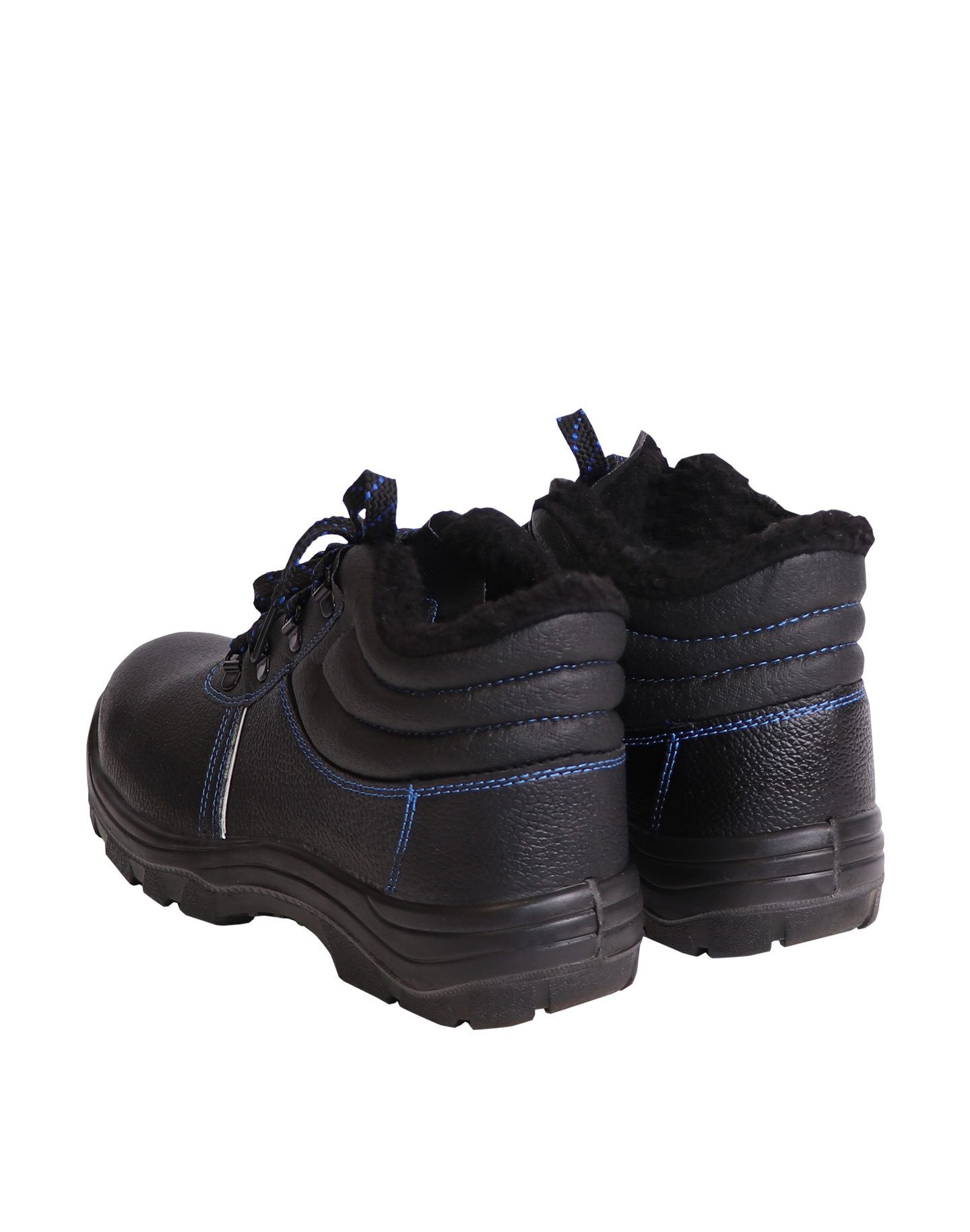 Ботинки из кожи c мягким кантом и глухим клапаном на подкладке из искусственного меха. Шнуровка, проходящая через металлические петли, обеспечивает комфортную адаптивную посадку. Светоотражающие элементы повышают видимость работников в темное время суток и на неосвещенной территории. В модели предусмотрена съемная стелька. Однослойная маслобензостойкая полиуретановая подошва литьевого метода крепления имеет вставку в пяточной части подошвы, обладающую амортизационными свойствами и способную гасить ударные нагрузки при ходьбе. Глубина протектора ходового слоя обеспечивает хорошую сцепляемость с поверхностями и препятствует скольжению за счет рельефа протектора. Металлический подносок обеспечивает защиту пальцев стопы от механических повреждений ударной прочностью до 200Дж. На этот товар имеется заключение Минпромторг.