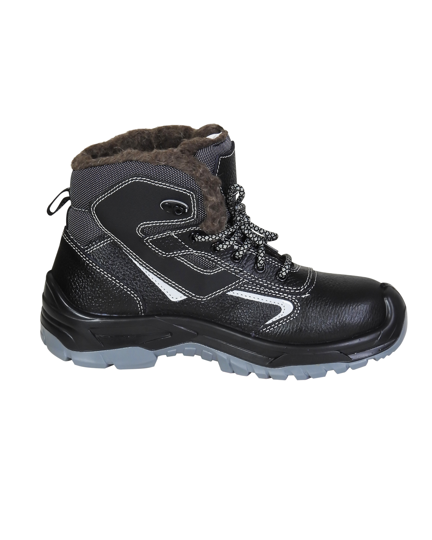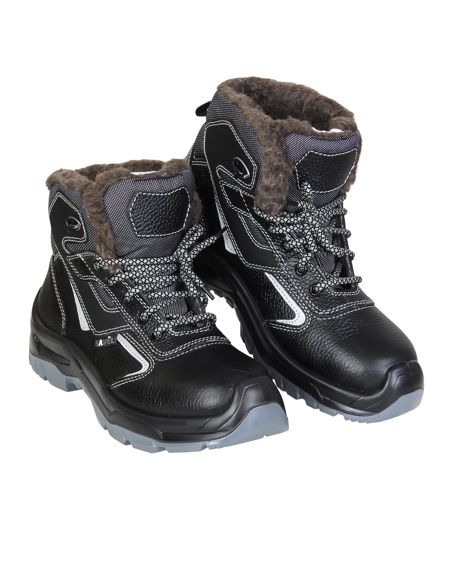 Ботинки "SAVЁL-ДЖЕТ-ЗИМА", кожа, МП МС, ПУ-ТПУ предназначены для эксплуатации в зимний и весенне-осенний периоды. Подошва этих ботинок изготавливается методом прямого прилива полиуретана и термопластичного полиуретана к заготовке верха обуви, при производстве которой используется натуральная кожа толщиной 1,8–2,0 мм. Кожа применяется со специальным покрытием для защиты от ОПЗ, МВ, МВО. Колодка обладает полнотно-размерными характеристиками защитной обуви, что даёт возможность работать с комфортом и без усталости. Клапан-язык полуглухой, изготовлен из функциональной ткани кордура. Служит для защиты от попадания внутрь мелких фрагментов различных материалов. Мягкий кант из такой же ткани обеспечивает комфортное облегание и боковую поддержку, деликатно обхватывает щиколотку, защищает от возможных боковых ударов. Подкладка и вкладная стелька в ботинках серии "SAVЁL-ДЖЕТ" утеплённые, из шерстина. Имеются световозвращающие элементы для привлечения внимания и исключения несчастных случаев на производстве в темное время суток. В носочной части стопы конструкция ботинок оснащена металлическими подносками, предохраняющими ноги от удара и имеющими ударную прочность не менее 200 Дж, что регламентировано российскими и европейскими стандартами. Антипрокольная стелька, расположенная между промежуточным слоем подошвы и штробельной подкладкой, дополнительно защищает стопы ног от проколов, порезов, сильных ударов и прочих производственных травм. Подошва двухслойная ПУ/ТПУ (устойчивая к воздействию химических факторов – нефти, нефтепродуктов, растворов кислот и щелочей концентрации до 20%). Промежуточный слой из полиуретана обладает амортизирующими свойствами, гасит ударные нагрузки, а также придает обуви лёгкость, комфорт и повышенные теплозащитные свойства. Ходовой слой из термополиуретана обладает гибкостью и прочностью, позволяя обуви с подошвой из такого универсального материала служить надёжной защитой работника длительное время. Глубина профиля (протектора) ходового слоя подошвы обеспечивает защиту от скольжения, а расположенный под углом рисунок протектора обеспечивает самоочищение подошвы от загрязнений. Литьевой метод крепления подошвы обеспечивает с верхом обуви единое целое, в результате достигается полная герметичность в месте литья. Такой метод является самым прочным и долговечным на сегодняшний день. Обувь серии "SAVЁL-ДЖЕТ-ЗИМА" предназначена для работы в нефтегазовой, горнодобывающей, энергетической, химической промышленности, на транспорте, в агропромышленном комплексе и сервисных службах. Защитные свойства и соответствие ГОСТам указаны в сертификате.