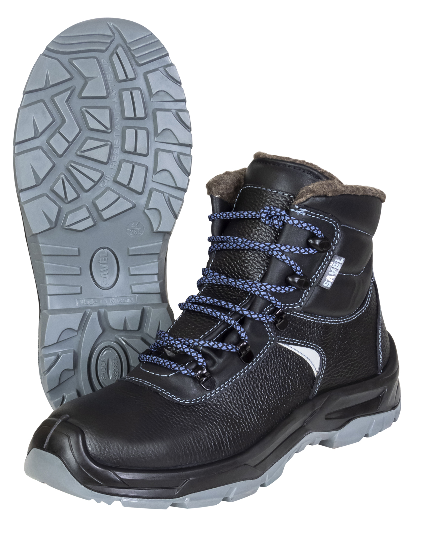 Ботинки "SAVЁL-ГЕРМЕС-ЗИМА", кожа, МП МС, ПУ-ТПУ предназначены для эксплуатации в зимний и весенне-осенний периоды. Подошва этих ботинок изготавливается методом прямого прилива полиуретана и термопластичного полиуретана к заготовке верха обуви, при производстве которой используется натуральная кожа толщиной 1,8–2,0 мм. Кожа применяется со специальным покрытием для защиты от ОПЗ, МВ, МВО. Клапан-язык полуглухой, изготовлен из кожи. Служит для защиты от попадания внутрь мелких фрагментов различных материалов. Мягкий кант из такой же ткани обеспечивает комфортное облегание и боковую поддержку, деликатно обхватывает щиколотку, защищает от возможных боковых ударов. Подкладка и вкладная стелька в ботинках серии "SAVЁL-ГЕРМЕС" утеплённые, из шерстина. Для устранения натирания пятки и стирания ворсисто-волокнистого покрытия утеплителя в изнаночной зоне обувной пятки вшит внутренний мягкий задник из натуральной кожи. Имеются световозвращающие элементы для привлечения внимания и исключения несчастных случаев на производстве в темное время суток. В носочной части стопы конструкция ботинок оснащена металлическими подносками, предохраняющими ноги от удара и имеющими ударную прочность не менее 200 Дж, что регламентировано российскими и европейскими стандартами. Подошва двухслойная ПУ/ТПУ (устойчивая к воздействию химических факторов – нефти, нефтепродуктов, растворов кислот и щелочей концентрации до 20%). Промежуточный слой из полиуретана обладает амортизирующими свойствами, гасит ударные нагрузки, а также придает обуви лёгкость, комфорт и повышенные теплозащитные свойства. Ходовой слой из термополиуретана обладает гибкостью и прочностью, позволяя обуви с подошвой из такого универсального материала служить надёжной защитой работника длительное время. Глубина профиля (протектора) ходового слоя подошвы обеспечивает защиту от скольжения, а расположенный под углом рисунок протектора обеспечивает самоочищение подошвы от загрязнений. Литьевой метод крепления подошвы обеспечивает с верхом обуви единое целое, в результате достигается полная герметичность в месте литья. Такой метод является самым прочным и долговечным на сегодняшний день. Обувь серии "SAVЁL-ГЕРМЕС-ЗИМА" предназначена для работы в нефтегазовой, горнодобывающей, энергетической, химической промышленности, на транспорте, в агропромышленном комплексе и сервисных службах. Защитные свойства и соответствие ГОСТам указаны в сертификате.
