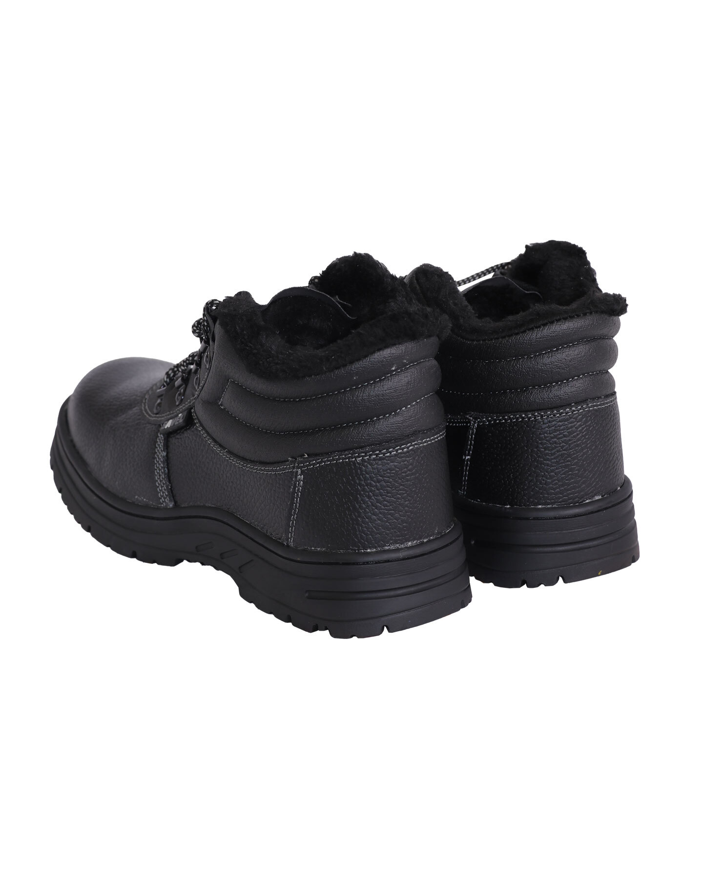 Верх обуви из кожи со специальным покрытием для защиты от ОПЗ, МВ. Важное достоинство этой обуви – двойной (комбинированный) метод крепления, при котором к химическому соединению деталей добавляется механический. Это придает дополнительную прочность соединению верха обуви и подошвы, улучшает эксплуатационные свойства и прочность крепления. Рабочая обувь клеепрошивного метода крепления универсальна в назначении для различных отраслей промышленности, а также для повседневной носки. Нитрил — синтетический каучук (резина). Характеризуется отличной устойчивостью к воздействию высоких температур (при кратковременном контакте подошвы с нагретой до +300°С поверхностью) в соответствии с ГОСТ 12.4.032-95 «Обувь специальная с кожаным верхом для защиты от действия повышенных температур», стойкостью к маслам, нефти и нефтепродуктам, кислотам и щелочам слабой концентрации, обладает высокой устойчивостью к скольжению на обледенелых поверхностях. Так как любая работа сопряжена с риском падения тяжелых предметов на ноги, будь то случайно сброшенный груз или сдавливание крупногабаритным объектом, эта обувь снабжена защитным подноском из металла с максимальной ударной нагрузкой (МУН) 200 джоулей. За счет этого обувь получает большое значение удельного сопротивления деформации, что обеспечивает наибольшую безопасность эксплуатации без снижения характеристик комфорта и удобства ношения.