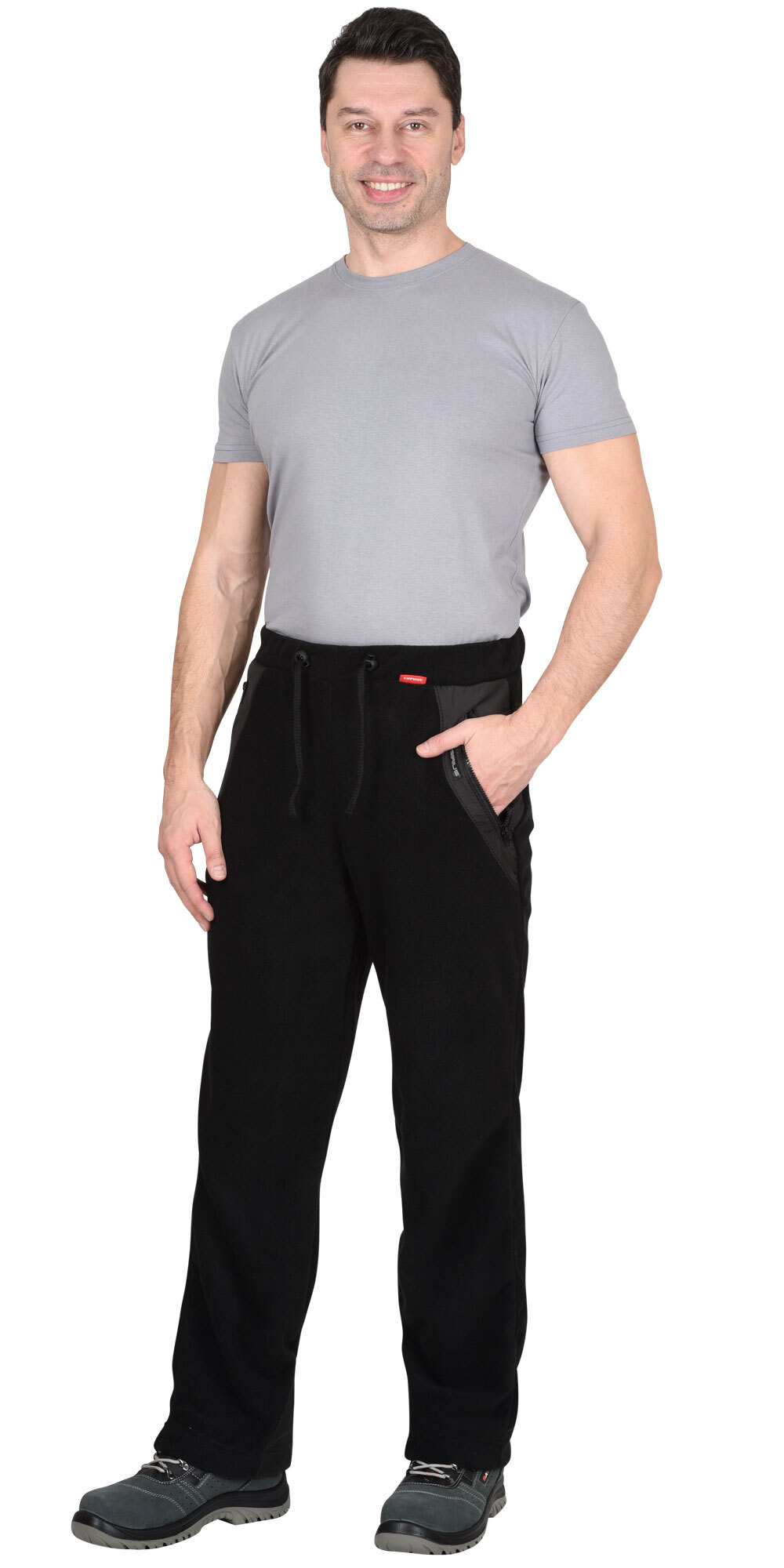 Брюки прямого покроя; с притачным поясом стянутым эластичной тесьмой и шнуром с фиксаторами, с боковыми вертикальными карманами, застегивающимися на молнию. На брюках располагаются декоративные вставки из ткани Дюспо, сверху в области бокового шва и снизу по шаговому шву. ГОСТ 25295-2003