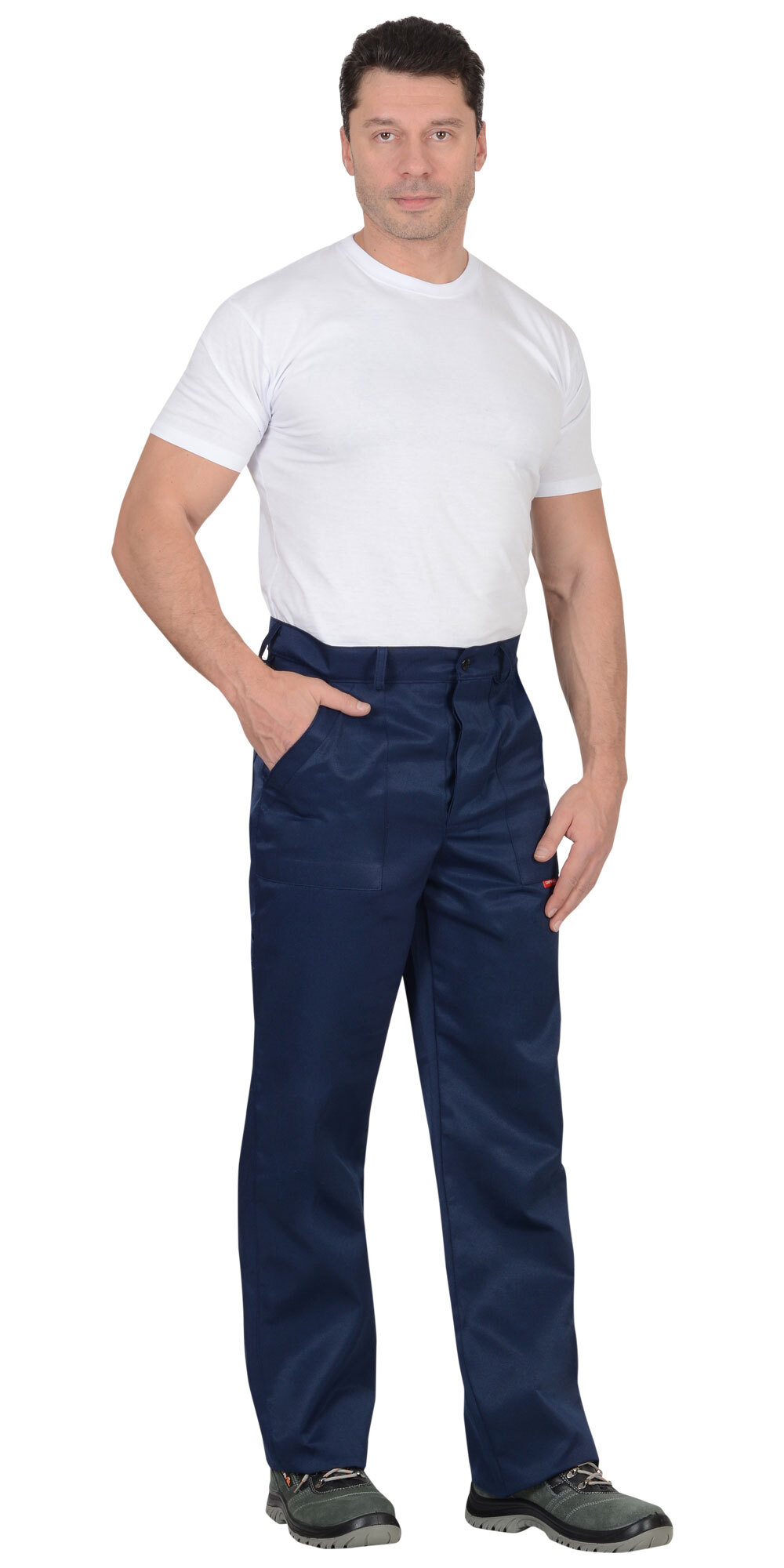 Брюки с заст.жкой спереди на 3 петли и 3пуговицы, с притачным поясом с 5 шлевками и заст.жкой на 1 петлю и пуговицу, с накладными боковыми карманами с наклонным входом, с накладным фигурным карманом и двумя (расположенными один на другом) накладными фигурными кармашками для инструментов на правой задней половинке. На маленьком кармашке 2 наклонные петли. ГОСТ 12.4.280-2014