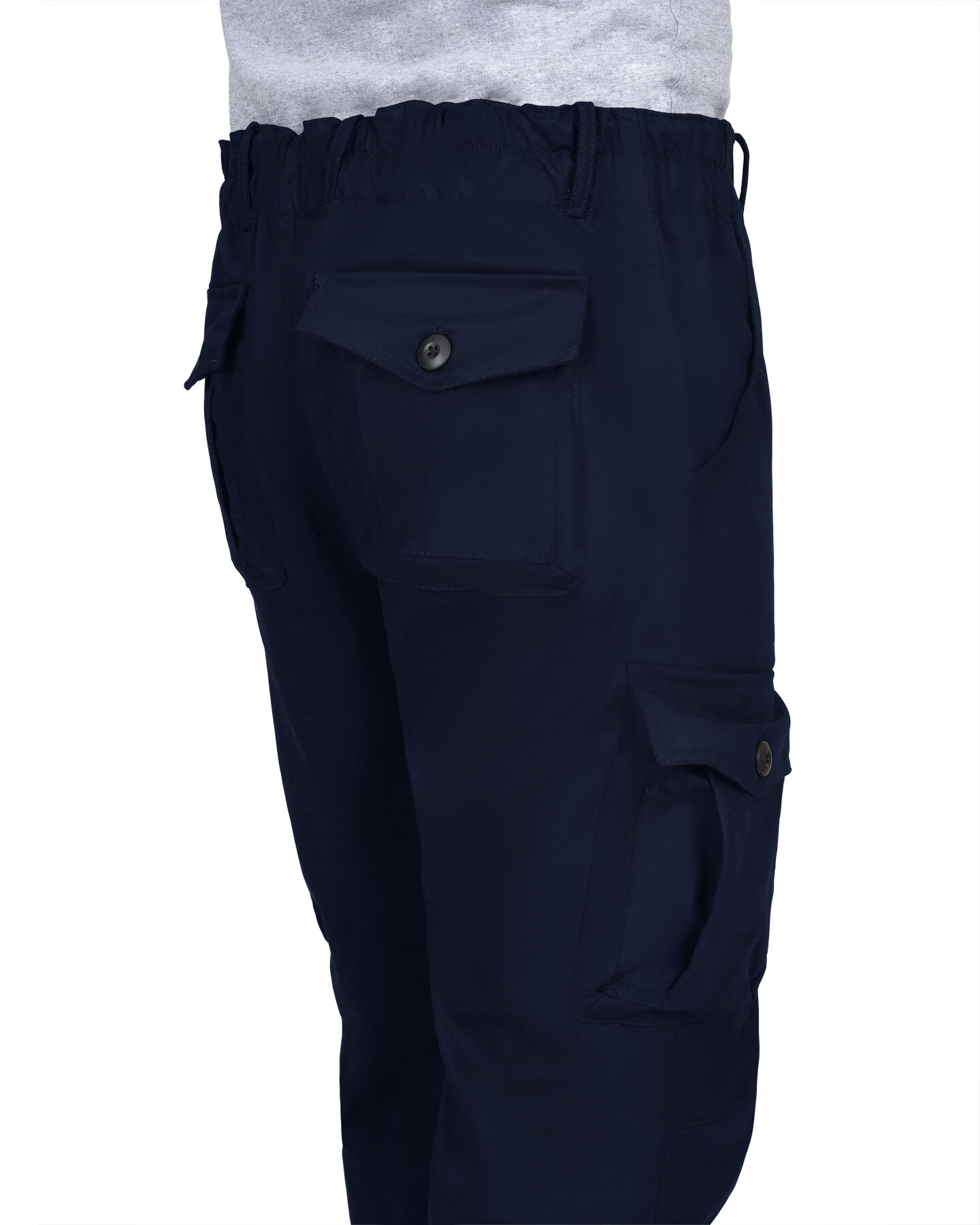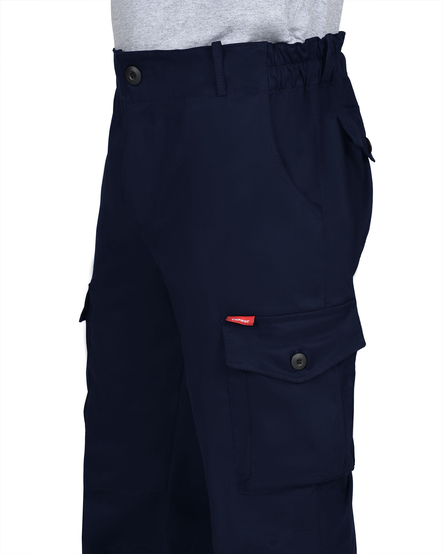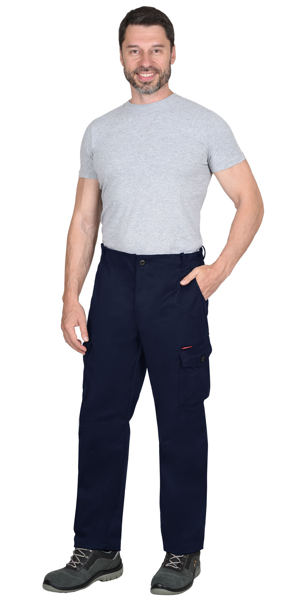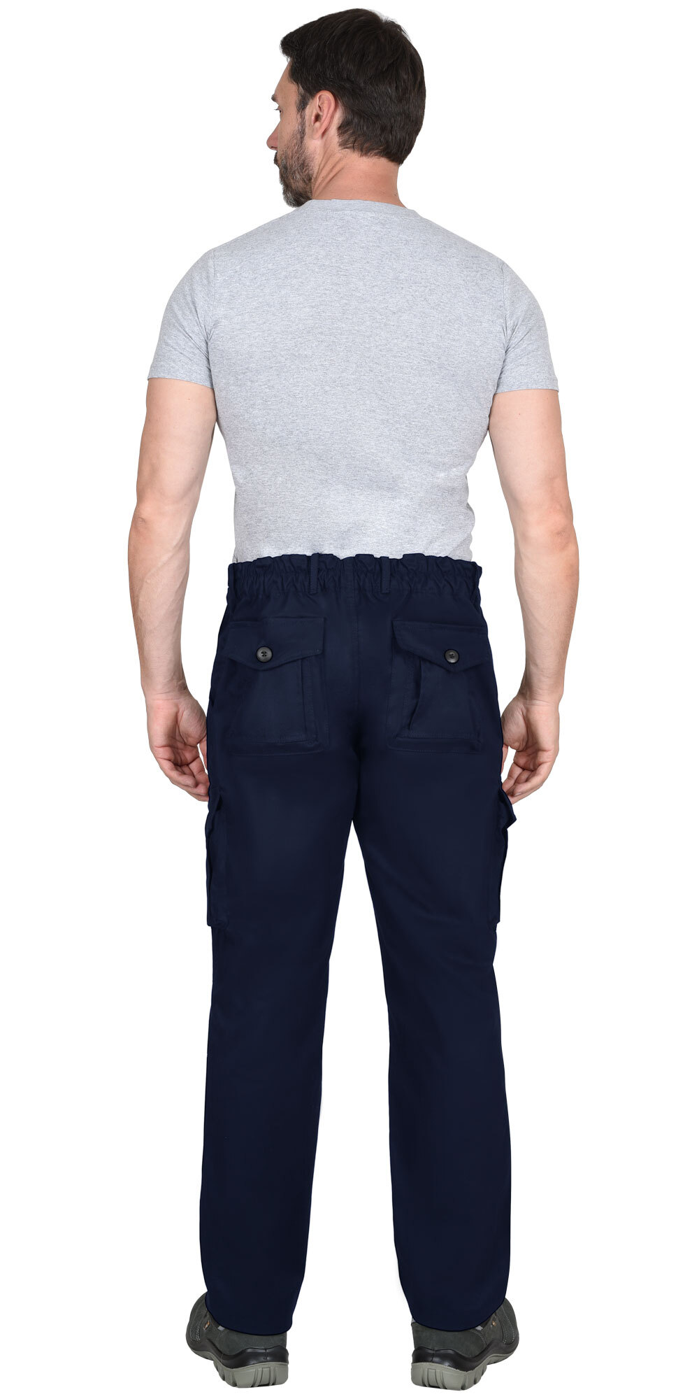 Брюки прямые с застежкой гульфика на молнию, цельновыкроенным поясом, частично стянутым резинкой и различными многофункциональными карманами. Ткань верха: тк. Механический стрейч, смесовая, с ВО пропиткой. Состав: 35% х/б; 65% п/э. Плотность: 260 г/м2. ГОСТ 25295-2003