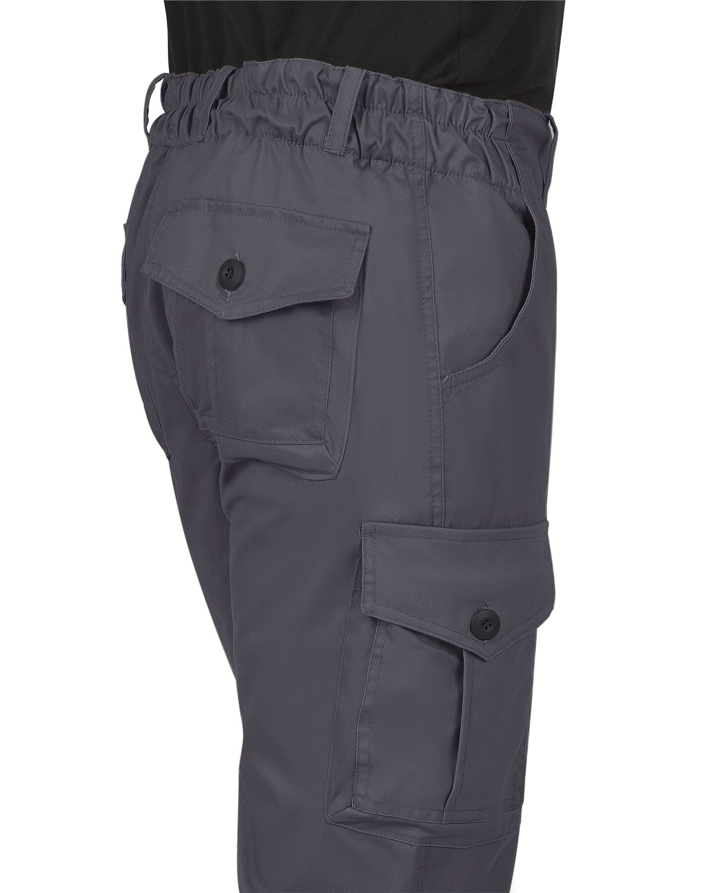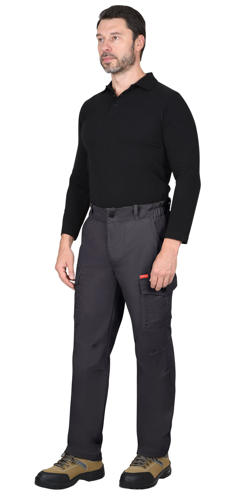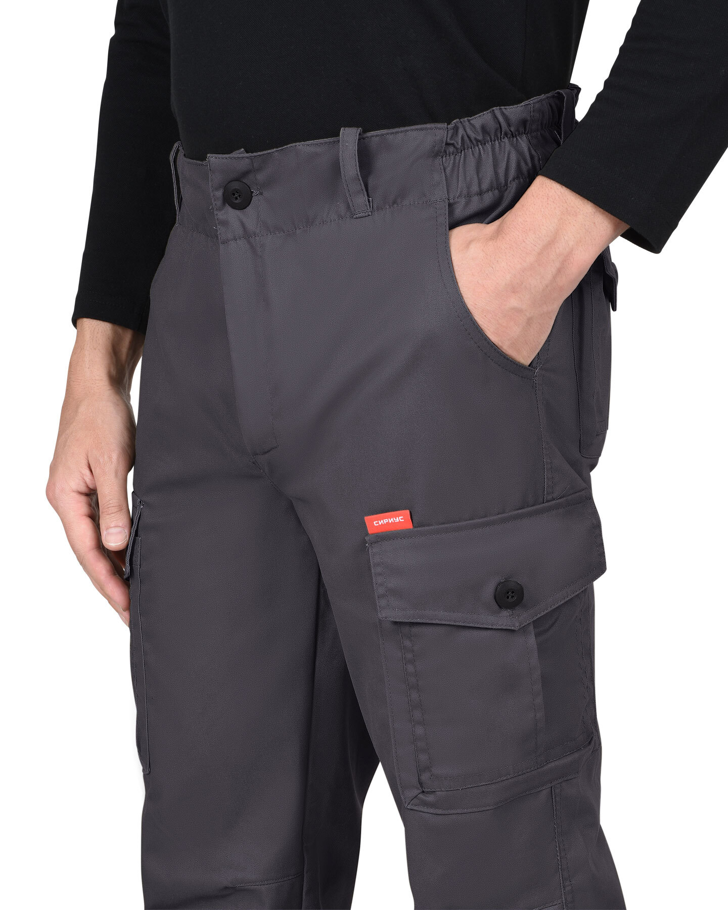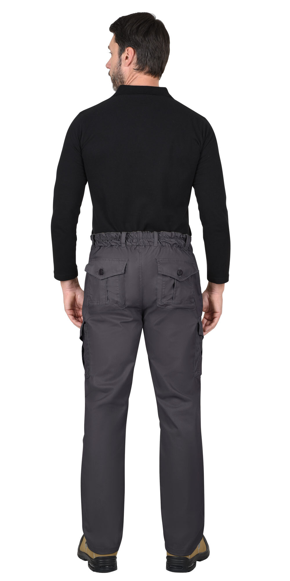 Брюки прямые с застежкой гульфика на молнию, цельновыкроенным поясом, частично стянутым резинкой и различными многофункциональными карманами. Ткань верха: тк. Механический стрейч, смесовая, с ВО пропиткой. Состав: 35% х/б; 65% п/э. Плотность: 260 г/м2. ГОСТ 25295-2003