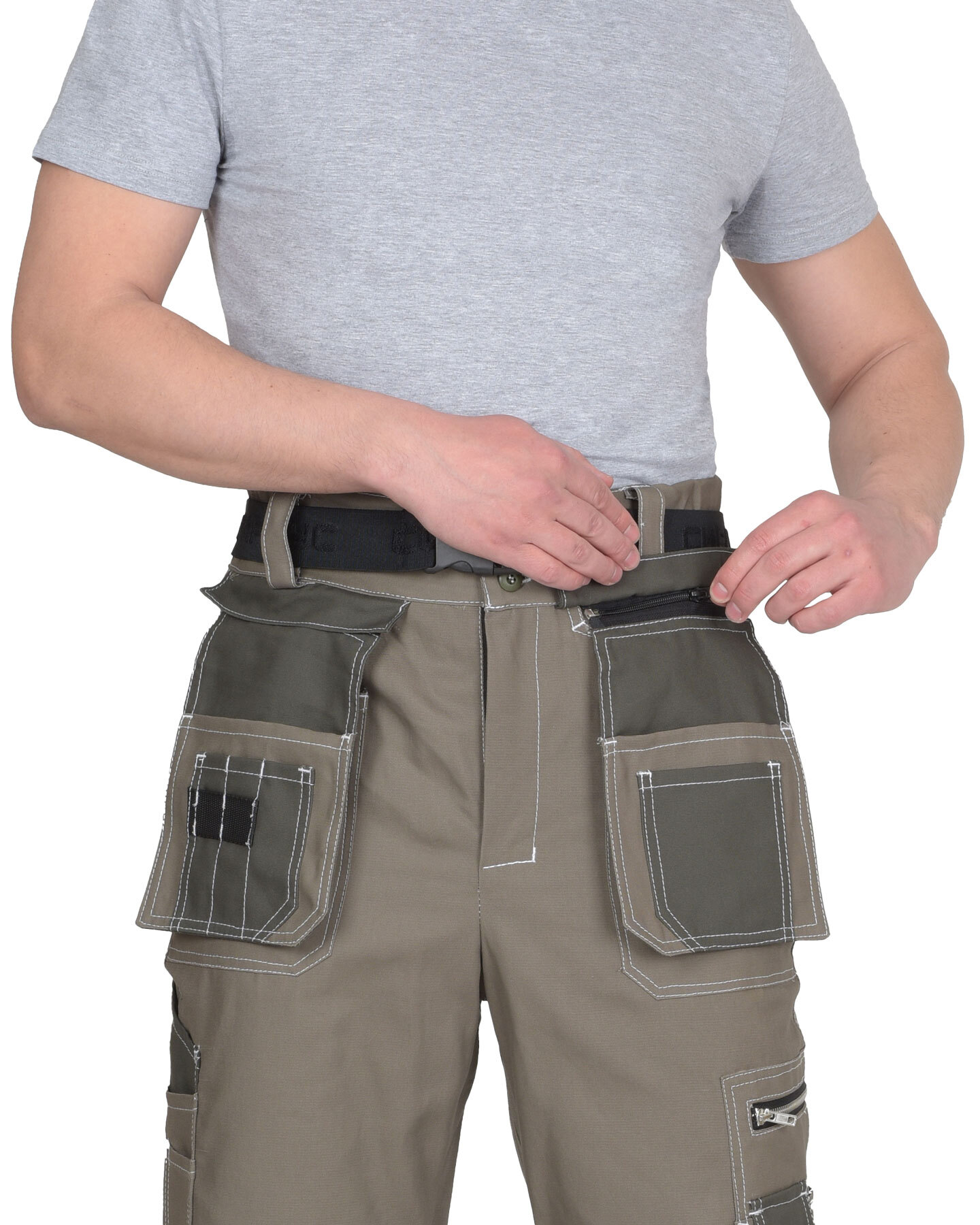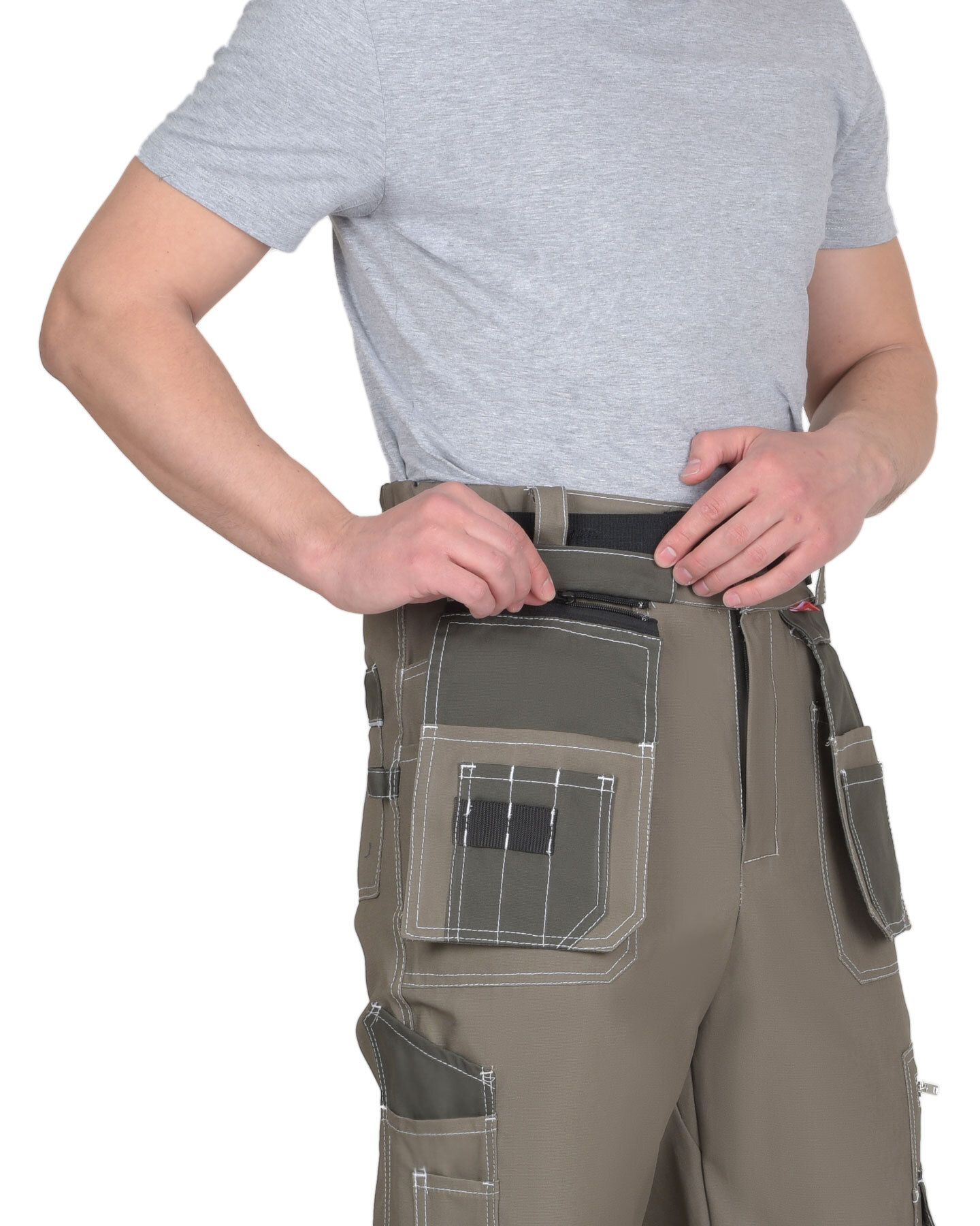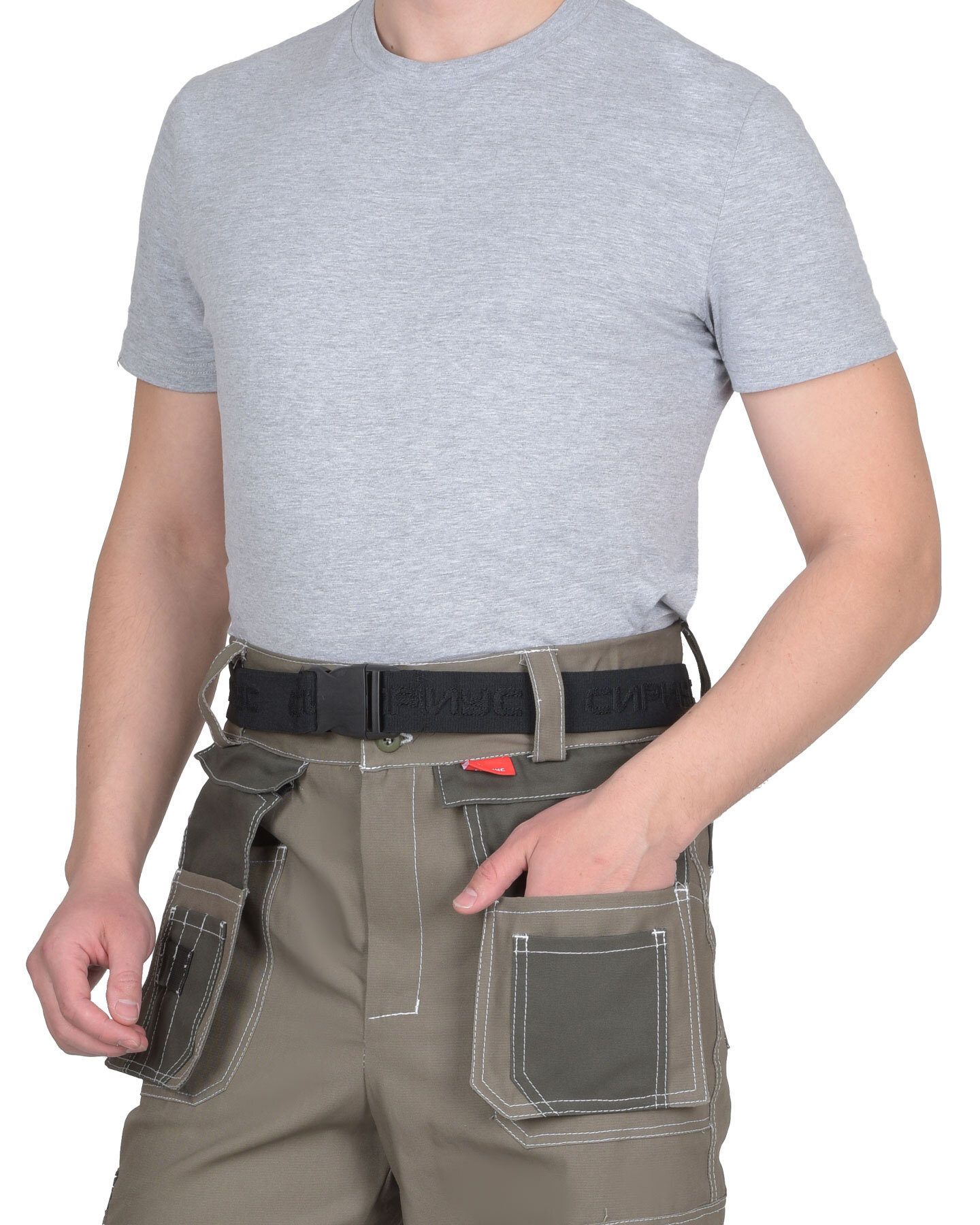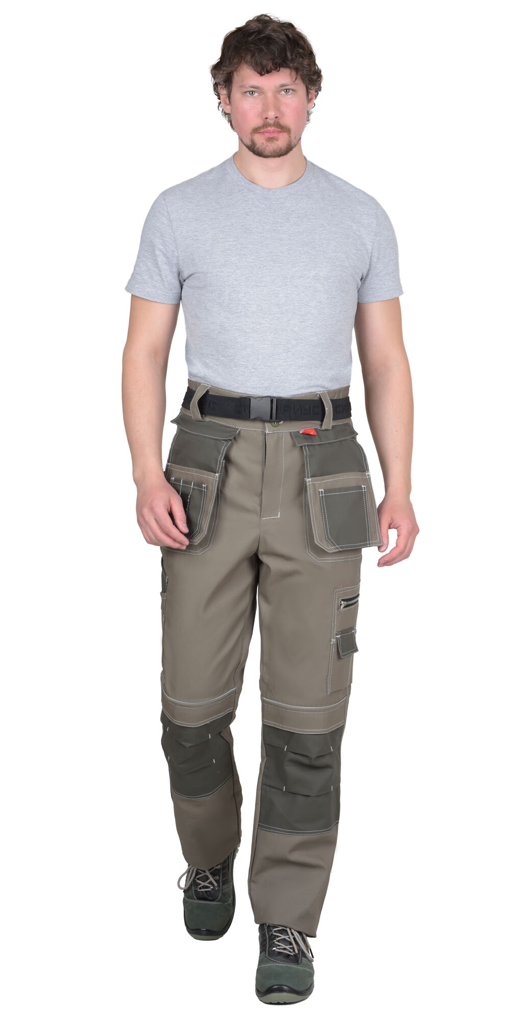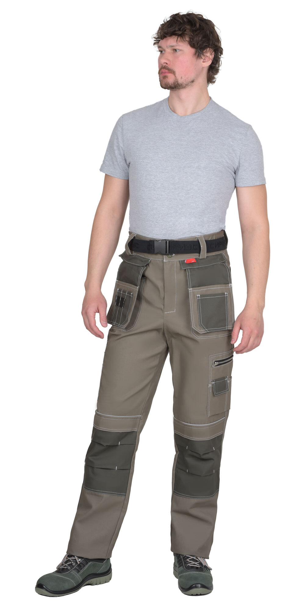 Брюки выполнены из ткани "Канвас Комфорт", прямого силуэта, с притачным поясом, с застежкой гульфика на тесьму – «молния», с различными многофункциональными карманами и объёмными наколенниками. В брюках предусмотрен ремень из резинки ременной «Сириус» застегивающийся на защелку-фастекс. Передние половинки с внутренними карманами с фигурным входом, с накладными фигурными карманами. Навесные пристегивающиеся карманы на тесьму – «молния». Навесной карман состоит из 3 карманов: навесной карман, средний навесной карман, и малый карман. Изделие с объёмными наколенниками (из ткани отделка) и клапаном, застегивающимся на потайную липучку длиной 4,0 см, с карманами на боковых швах. Задние половинки с накладными карманами и патой для инструментов. Пояс широкий, застегивается на 2 пуговицы, с резинкой по боковым швам. В брюках предусмотрен кант СВ 3 мм светоотражающий 100 К для обозначение видимости. «Канвас Комфорт» - это плотный материал с жесткой структурой. Широко используется для пошива одежды и снаряжения для активного отдыха, охоты и рыбалки. Состав ткани: 100% х/б Плотность: 265 г/м2 Пропитка: ВО 100% содержание хлопка обеспечивает самую высокую гигроскопичность ткани и удобство в носке, в том числе в условиях повышенных температур. К плюсам материала можно отнести: Прочность и износостойкость – на материале не появляются потертости даже спустя долгое время использования. На поверхности ткани не образуются затяжки и прочее, т. к. ее сложно порвать или вытянуть нитку. Ткань пропитывается специальными составами, из-за чего на ней не остается грязь и пыль. Не выцветает со временем даже после многократных стирок. Быстро высыхает и не требует специфичного ухода и сложных условий стирки и хранения. Красители устойчивы к воздействию лучей солнца.