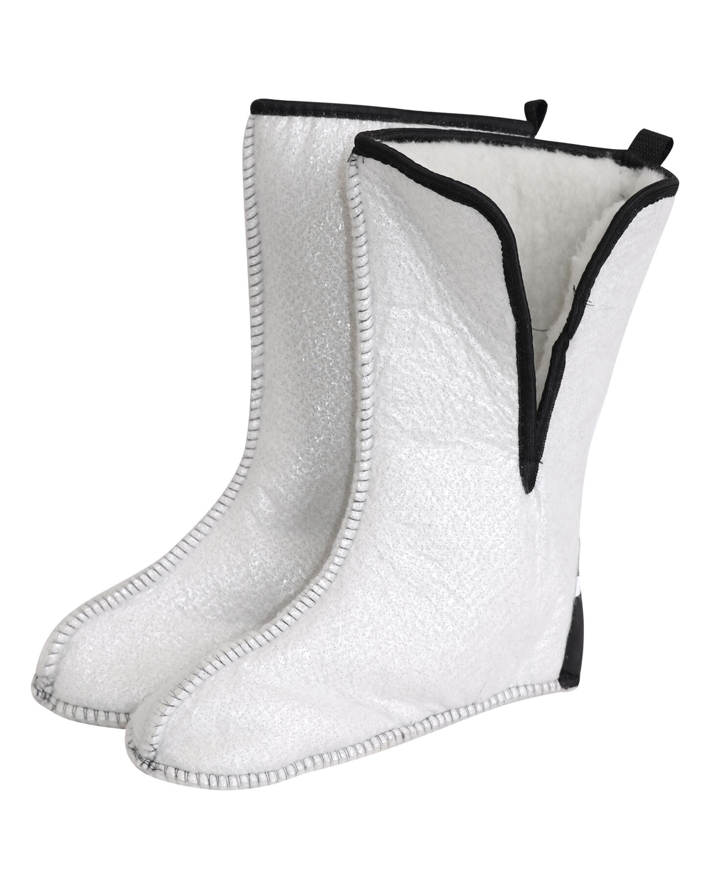 Утеплитель для сапог. Не пропускает холод, выводит лишнюю влагу и сохраняет ногу сухой. Подходит для использование при температурах до -50°С Состав утеплителя: - Нетканый материал "Термолин 450" (фольга, спандбонд белый); - Мех белый (плотность шерсти 540 гр.м²). Высота по среднему размеру 27 см