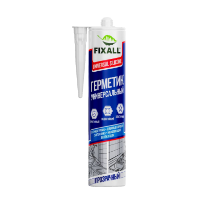 Герметик силиконовый Fixall универсальный прозрачный 280мл предназначен для внутренних и наружных отделочных работ в строительстве, обеспечивая качественную водостойкую герметизацию стыков и щелей.