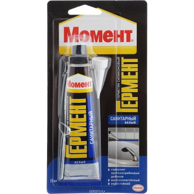 Герметик силиконовый "Момент Гермент" предназначен для герметизации и заполнения швов и стыков в помещениях с повышенной влажностью, таких как ванные комнаты, туалетные комнаты, кухни и при остеклении.
