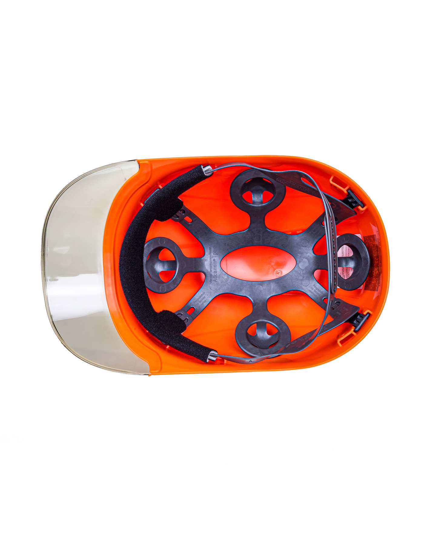 Предназначена для защиты головы от ударов о твёрдые неподвижные предметы, механических воздействий, в результате которых возможны ушибы или иные поверхностные повреждения, а также от загрязнений, микротравм, метеофакторов в производственных помещениях и на открытых площадках. Универсальный головной убор для комфорта и безопасности Ударопрочный корпус из полипропилена; Температура применения от -30°С до +50°С; Наличие вентиляционных отверстий; Огнестойкая (F); Прозрачный козырек для защиты глаз и лба от летящих мелких частиц, яркого света и капель жидкостей; Размер каскетки 50-60 см; Возможность нанесения несмываемой информации методом тампопечати, возможно нанесение светоотражающей полосы по бокам каскетки - для эксплуатации в условиях плохой видимости. Сфера применения: Автосервис, cтроительство и монтаж, техобслуживание, сельское хозяйство, фармацевтика, спорт, складские, плотницкие, ремонтные работы, бытовые работы и домашнее хозяйство, торговая и пищевая промышленность. Внимание! Каскетки совместимы с очками защитными открытыми и закрытыми, с наушниками противошумными РОСОМЗ® с шарнирным креплением оголовья к чашкам (СОМЗ-1 Ягуар,СОМЗ-3 Пума) или с затылочным (СОМЗ-63 Стальной Барс®). Диапазон рабочих температур: -30°C + 50°C Цвет: оранжевый Вид каскетки: общего назначения Длина козырька: стандартный Материал корпуса: PP (полипропилен) Наличие вентиляционных отверстий: есть Ремень с креплением в 2-х точках.