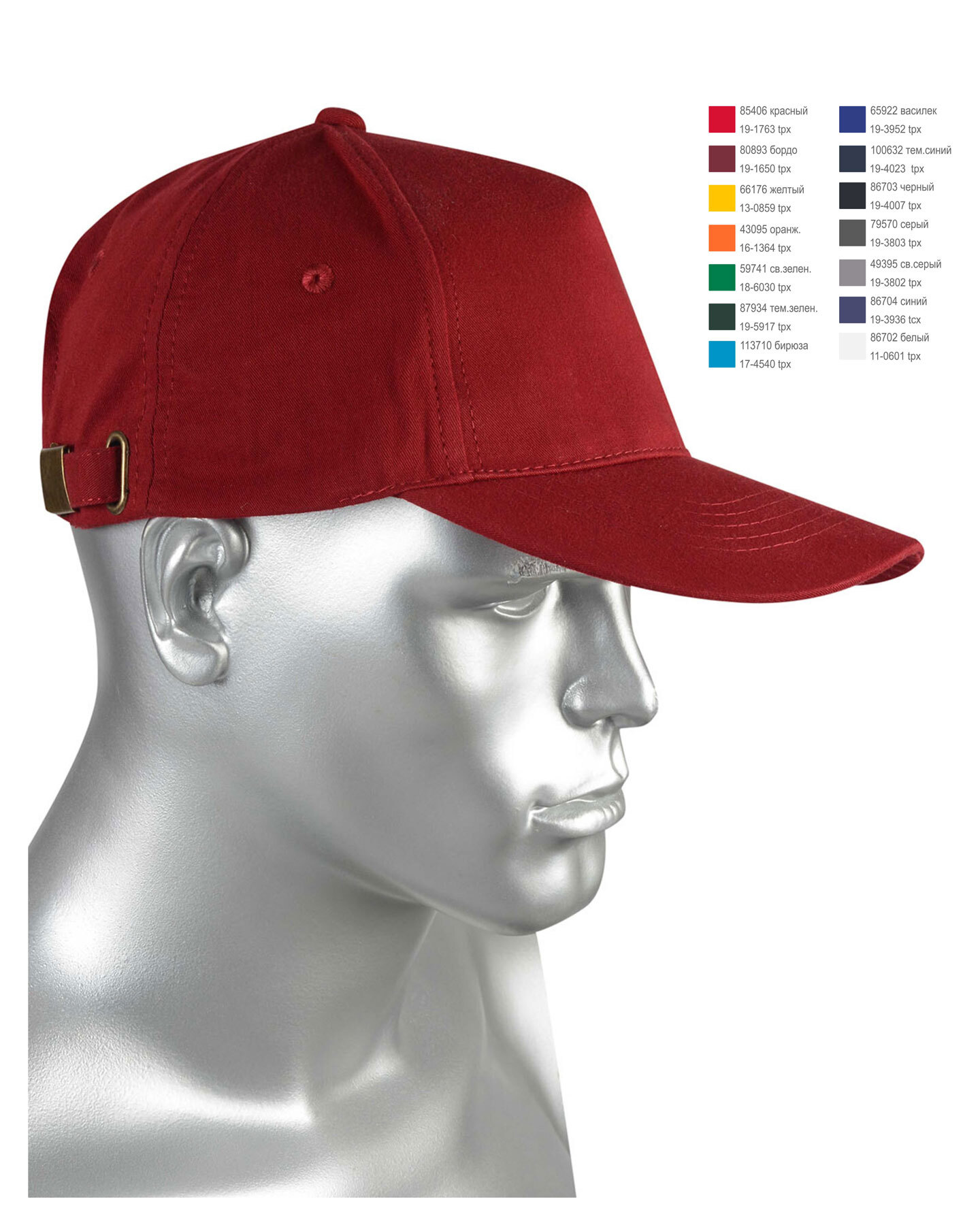 Кепи-бейсболка выполнена из текстильной ткани диагонального переплетения плотностью 200-210 гр/м2, 100% хлопок. Кепи-бейсболка состоит из 5-ти клиньев. Застежка металлическая расположена на правом заднем клине, там же и металлический люверс, для захода хлястика. Купол кепи - бейсболки отделан пуговицей, обтянутой основной тканью.