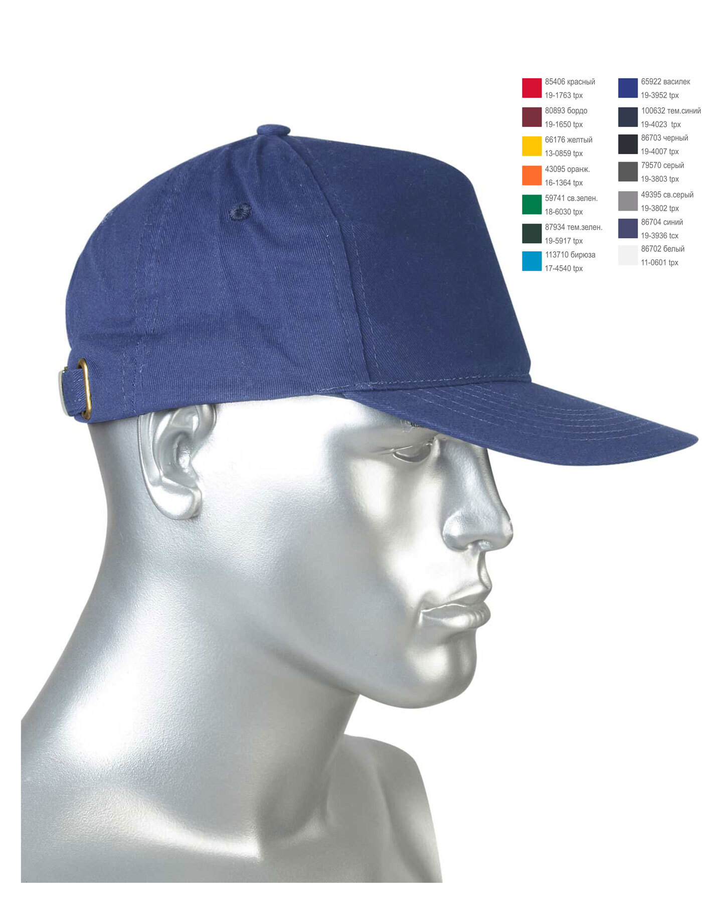 Кепи-бейсболка выполнена из текстильной ткани диагонального переплетения плотностью 200-210 гр/м2, 100% хлопок. Кепи-бейсболка состоит из 5-ти клиньев. Застежка металлическая расположена на правом заднем клине, там же и металлический люверс, для захода хлястика. Купол кепи - бейсболки отделан пуговицей, обтянутой основной тканью.