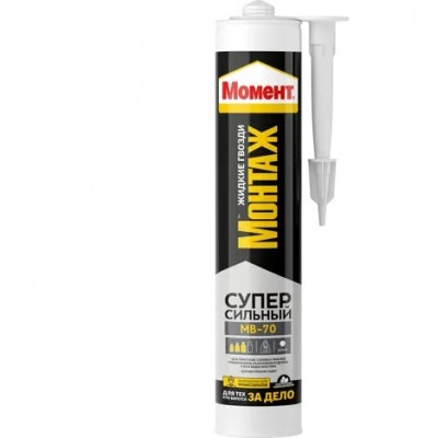 Клей момент монтаж суперсильный МВ-70 белого цвета предназначен для крепления и склеивания различных материалов в строительстве, обеспечивая высокую начальную силу прилипания (70 кг/м2).