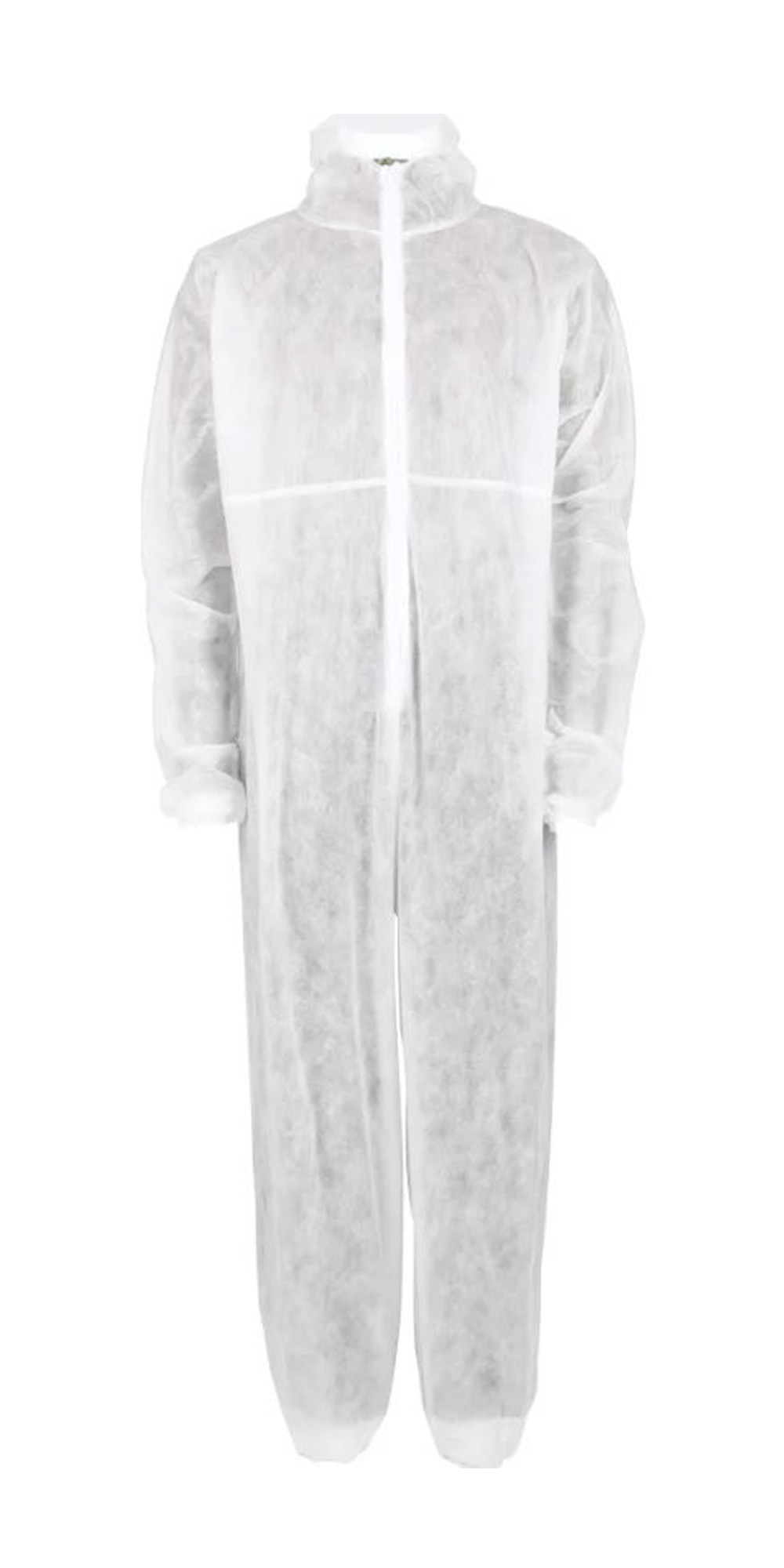 Одноразовый комбинезон белого цвета изготовлен из гипоаллергенного нетканого материала спанбонд плотностью 40гр/м.кв. Защита от твердых переносимых по воздуху веществ, тип защиты 5 (EN 13982). Обеспечивает хорошую воздухопроницаемость. Центральная застёжка на молнию с защитной планкой. Рукава, низ комбинезона и капюшон на резинках, для лучшей защиты от загрязнений. Имеет дополнительную прострочку и обработку швов, а так же эластичную резинку на поясе.