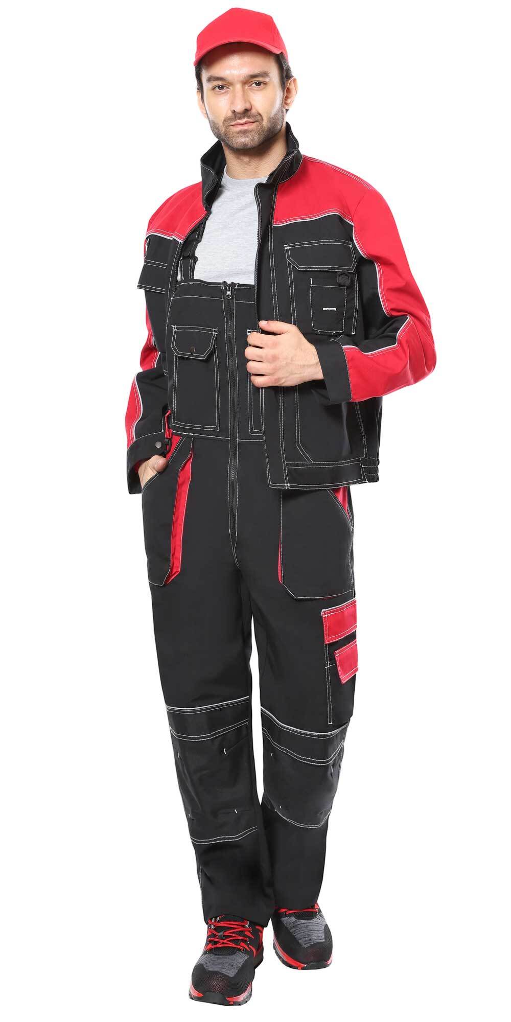 Костюм состоит из арт.144501 и арт.144528 . арт.144501 Куртка СИРИУС-АГАТ Куртка прямого силуэта, укороченная, с воротником стойка, с центральной застёжкой на молнию от края воротника до низа, накрытую ветрозащитным клапаном на липучках, с верхними и нижними накладными карманами. Рукава с манжетами на кнопках. Понизу куртки пояс с частичной стяжкой по бокам на резинку. В куртке предусмотрен светоотражающий кант. Материал верха основой: ткань смесовая, с пропиткой ВО, пл. 260 г/м², состав 65%ПЭ, 35%ХБ, цвет: черный Материал отделки: ткань смесовая, с пропиткой ВО, пл. 260 г/м², состав 65%ПЭ, 35%ХБ, цвет: красный Светоотражающий материал: кант СВ арт.144528 Полукомбинезон СИРИУС-АГАТ Полукомбинезон прямой с застёжкой спереди на молнию, с отрезной грудкой и отрезной спинкой, с бретелями. Полукомбинезон с накладными карманами спереди, сзади и на боковых швах, с объёмными наколенниками из плотной, непромокаемой ткани с верхним входом для амортизационного вкладыша. Бретели регулируются при помощи застежек-фастексов и резинки. В полукомбинезоне предусмотрен светоотражающий кант. Материал верха основой: ткань смесовая, с пропиткой ВО, пл. 260 г/м², состав 65%ПЭ, 35%ХБ, цвет: черный Материал отделки 1: ткань смесовая, с пропиткой ВО, пл. 260 г/м², состав 65%ПЭ, 35%ХБ, цвет: красный Материал отделки 2: ткань полиэфирная, с пропиткой ВО, состав: 100% ПЭ, пл. 300 г/м². цвет: черный Светоотражающий материал: кант СВ