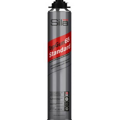 Монтажная пена Sila Pro TopGun 65 профессиональная, объемом 850 мл, предназначена для монтажных и герметизационных работ в строительстве.