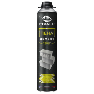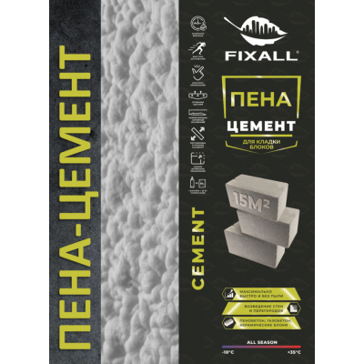 Пена-Цемент FIXALL предназначен для возведения стен и перегородок при монтажных и ремонтно-строительных работах внутри и снаружи помещений, обеспечивая низкую теплопроводность и быструю кладку без необходимости использования дополнительного оборудования.