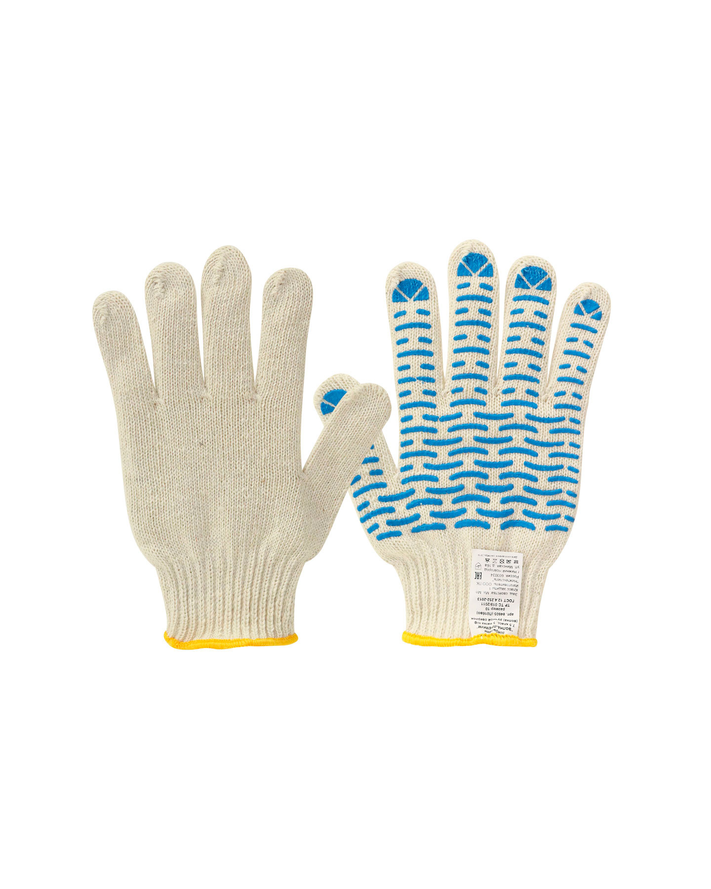 Рабочие перчатки с ПВХ изготовлены из хлопка с добавлением п/э, а точечки на контактной поверхности из специального полимерного материала. Покрытие из ПВХ позволяет крепко удерживать в руках скользящие материалы, структура покрытия не позволяет предмету вылететь или выскользнуть из руки. . применяются для защиты рук от разнообразных повреждений – таких как ссадины, занозы, порезы. Они удобны в использовании при работе на садовом участке, применяют их также в процессе осуществления строительных либо ремонтных работ. Невысокая стоимость отлично сочетается в этих изделиях с безукоризненным качеством и износостойкостью. В холодное время года эти СИЗ, помимо всего прочего, предохраняют руки от переохлаждения. Благодаря эластичности перчатки бережно относятся к коже рук, не натирая ее.
