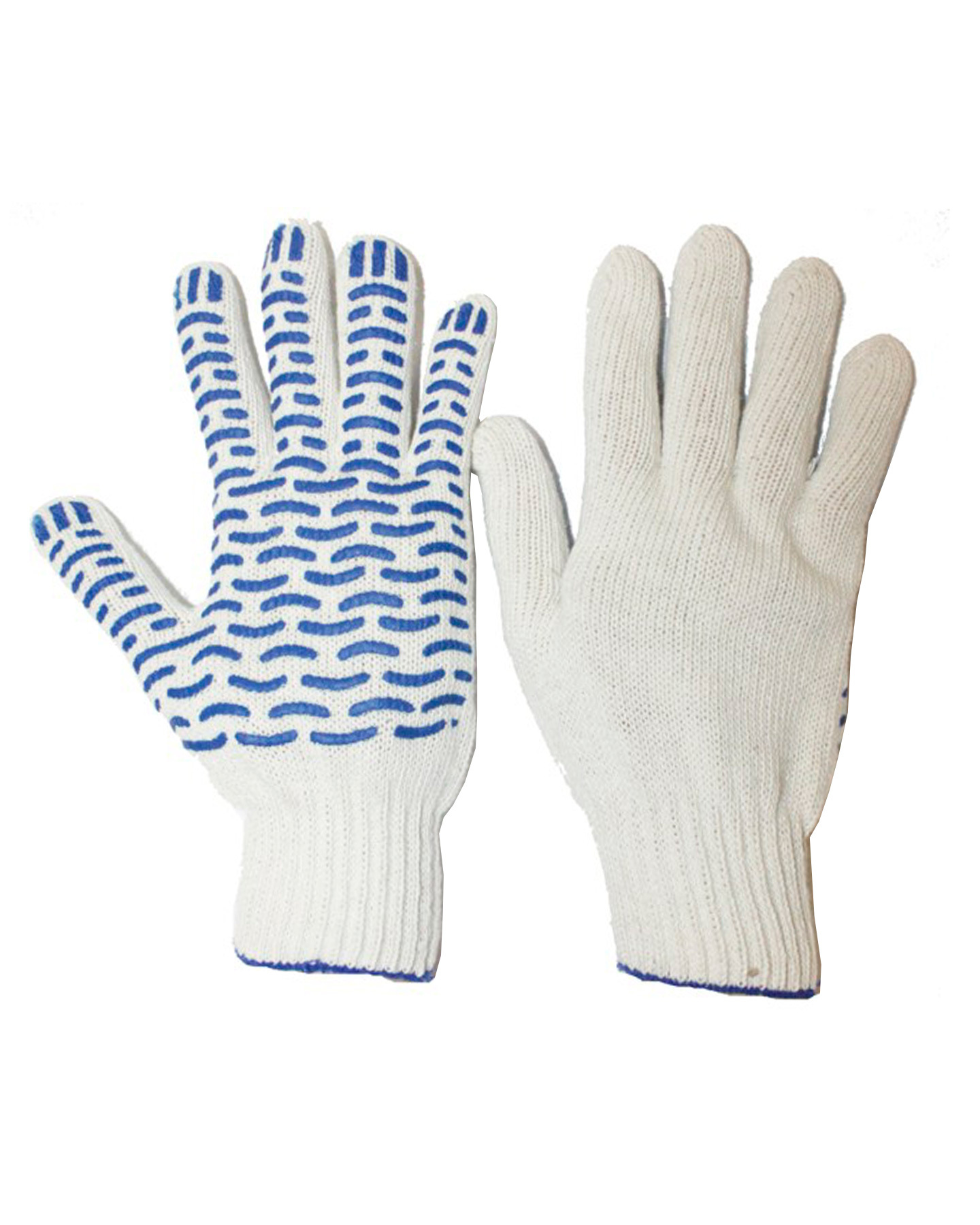 Рабочие перчатки с ПВХ изготовлены из хлопка с добавлением п/э, а точечки на контактной поверхности из специального полимерного материала. Покрытие из ПВХ позволяет крепко удерживать в руках скользящие материалы, структура покрытия не позволяет предмету вылететь или выскользнуть из руки. . применяются для защиты рук от разнообразных повреждений – таких как ссадины, занозы, порезы. Они удобны в использовании при работе на садовом участке, применяют их также в процессе осуществления строительных либо ремонтных работ. Невысокая стоимость отлично сочетается в этих изделиях с безукоризненным качеством и износостойкостью. В холодное время года эти СИЗ, помимо всего прочего, предохраняют руки от переохлаждения. Благодаря эластичности перчатки бережно относятся к коже рук, не натирая ее.