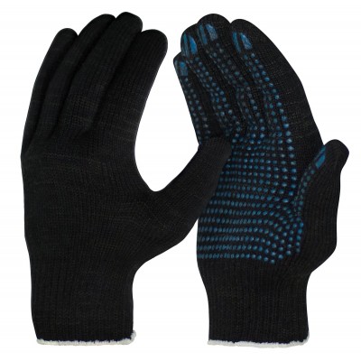 - Повышенная износостойкость благодаря точечному пвх-покрытию, которое значительно увеличивает стойкость к истиранию по сравнению с обычными х/б перчатками.