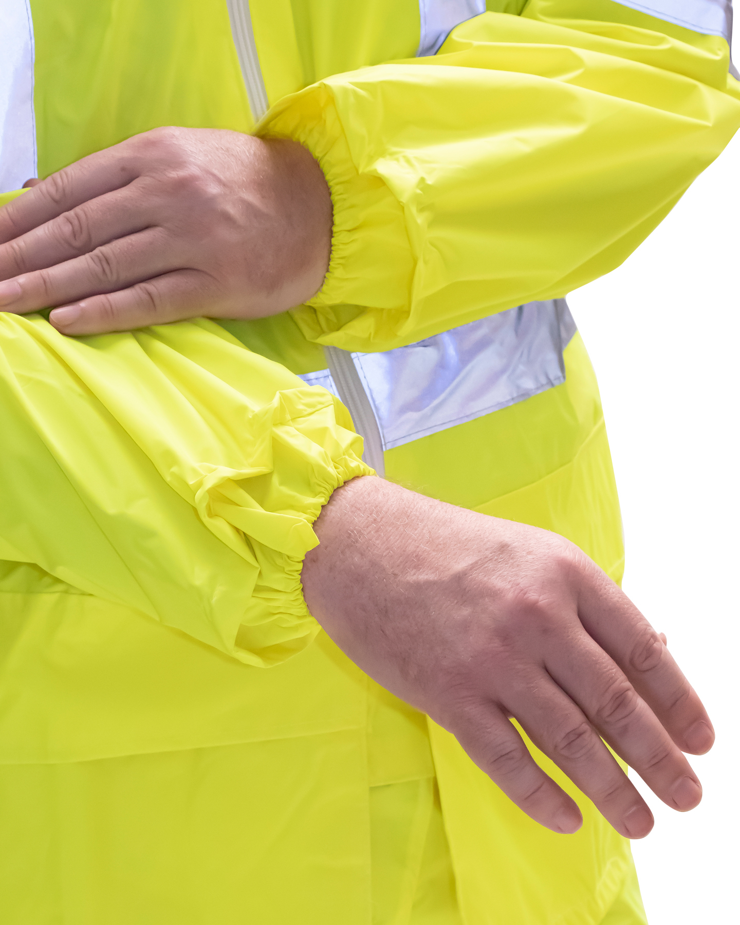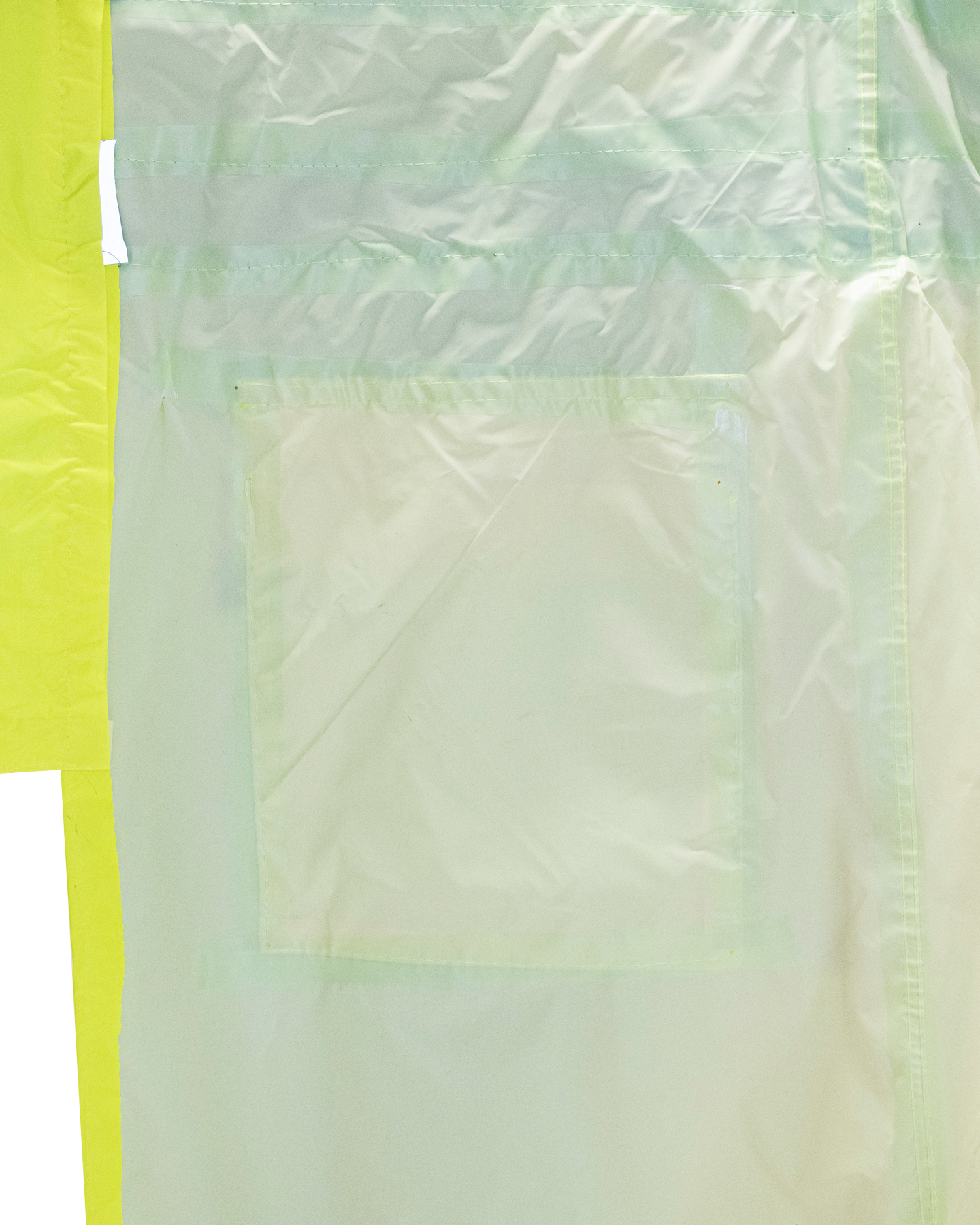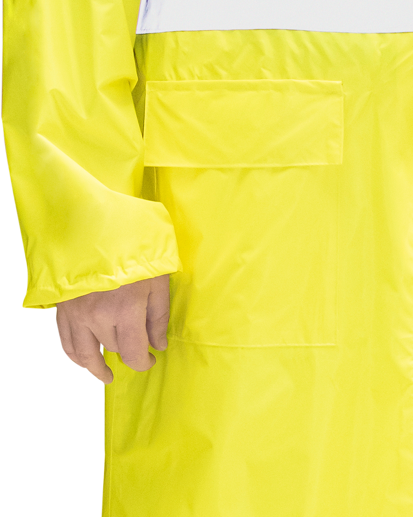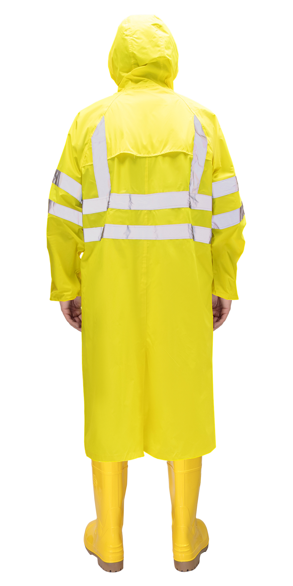 Плащ изготавливается из прочной плащевой ткани ярко-лимонного цвета с ПВХ покрытием. Вес ткани — 225 гр./метр.кв. Имеет светоотражающие полосы. Соответствует 3-му классу по ГОСТ Р 12.4.219-99 «Одежда специальная сигнальная повышенной видимости», 3-ий класс защиты от воды. - Плащ с застежкой на молнии с ветрозащитной внутренней планкой - Капюшон регулируется шнуром с фиксаторами - Два кармана с клапанами - Рукава с манжетами Каждый плащ упакован в отдельный пакет. Все швы прошиты и загерметизированы специальной лентой.