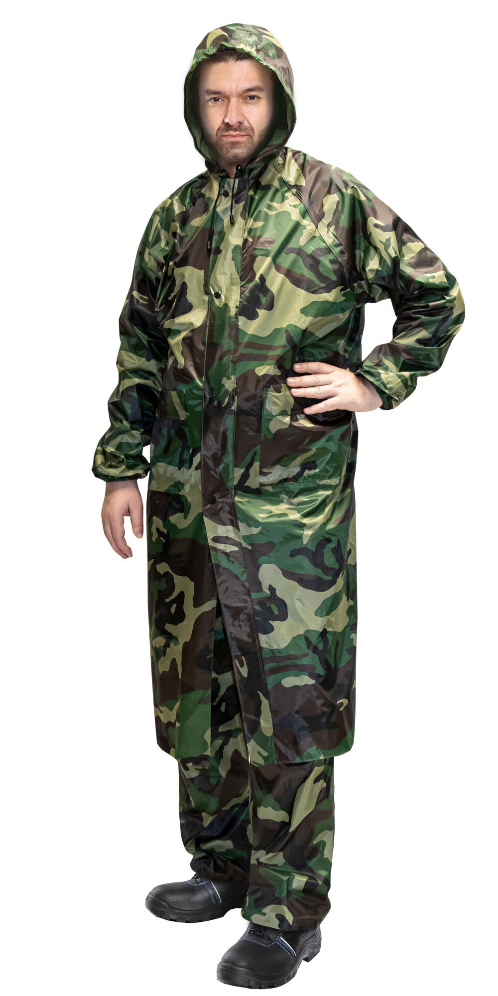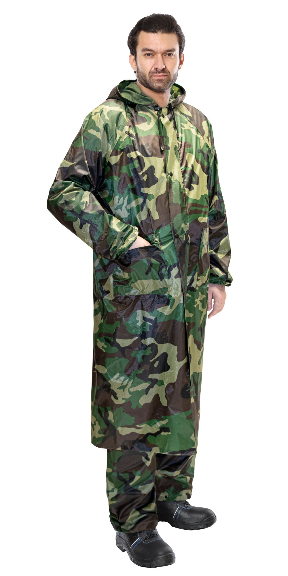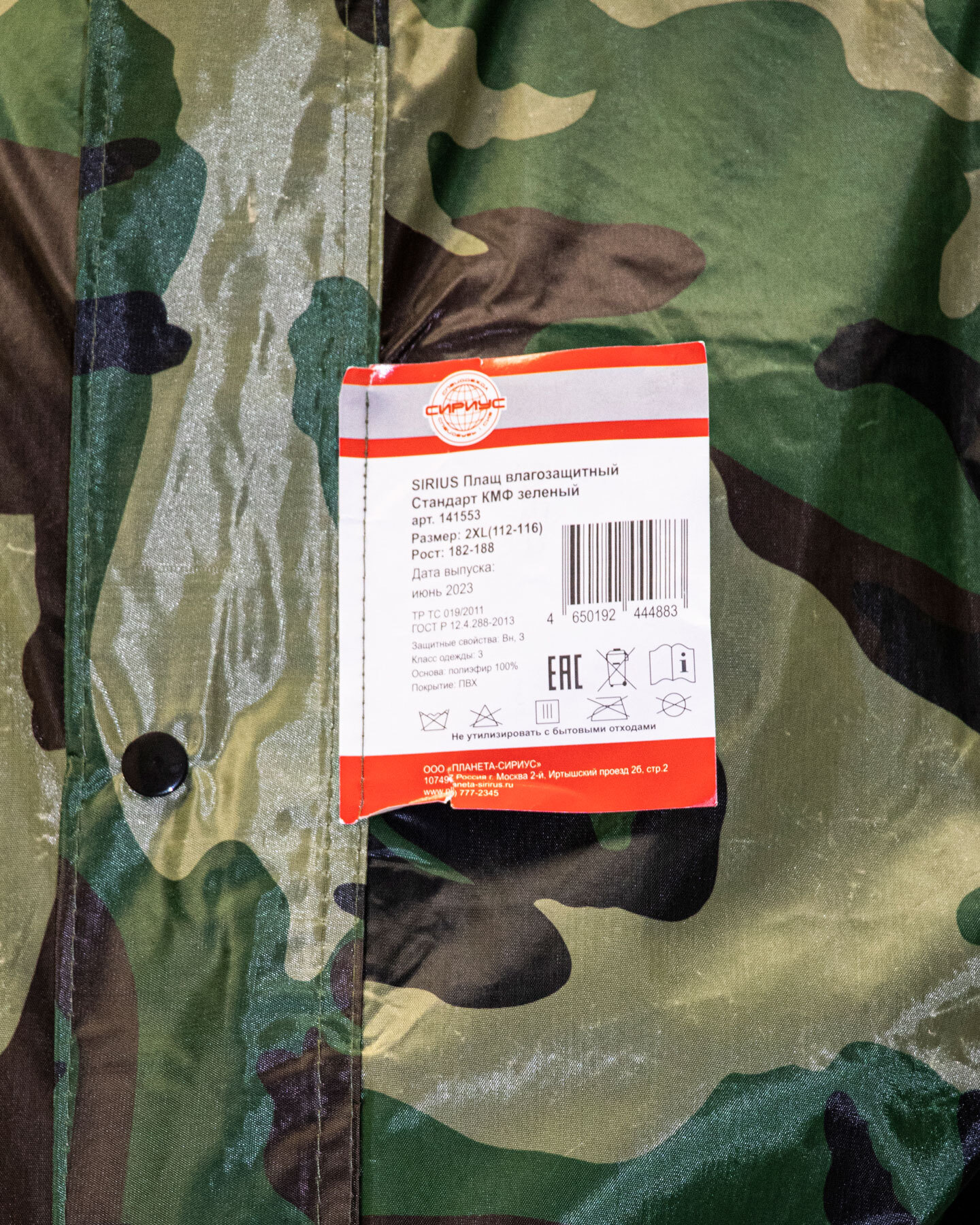 Плащ влагозащитный ПВХ SIRIUS Стандарт КМФ зеленый. Изготавливается из прочной плащевой ткани с ПВХ покрытием. Вес ткани — 210 гр./метр.кв. - Имеется ветрозащитная планка с кнопками, два кармана с клапанами. - Капюшон регулируется шнуром с фиксаторами. - Рукава снабжены манжетами на резинке. - Вентиляционные отверстия на спине и люверсы в подмышечной зоне. - Плащ с застежкой на молнии с ветрозащитным клапаном на кнопках. Швы прошиты и проклеены, герметизированы водостойким материалом. Каждый плащ упакован в отдельный пакет.