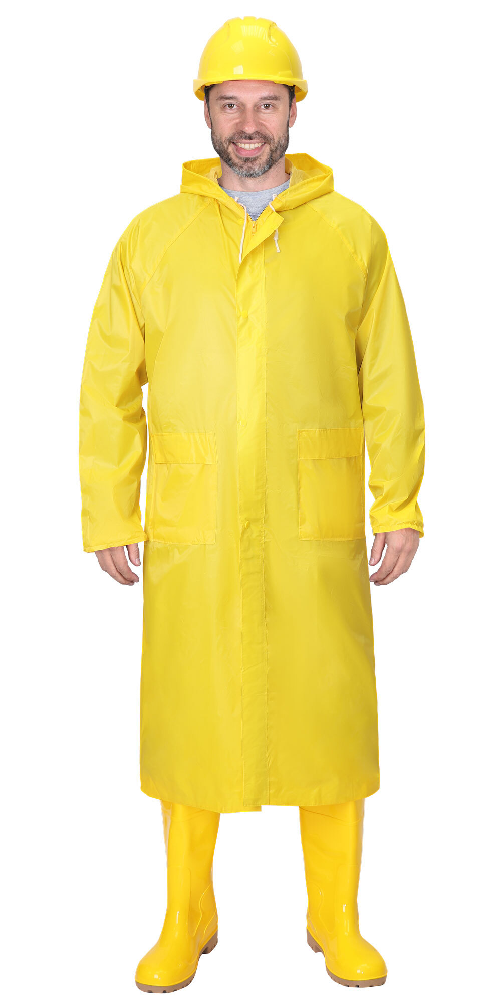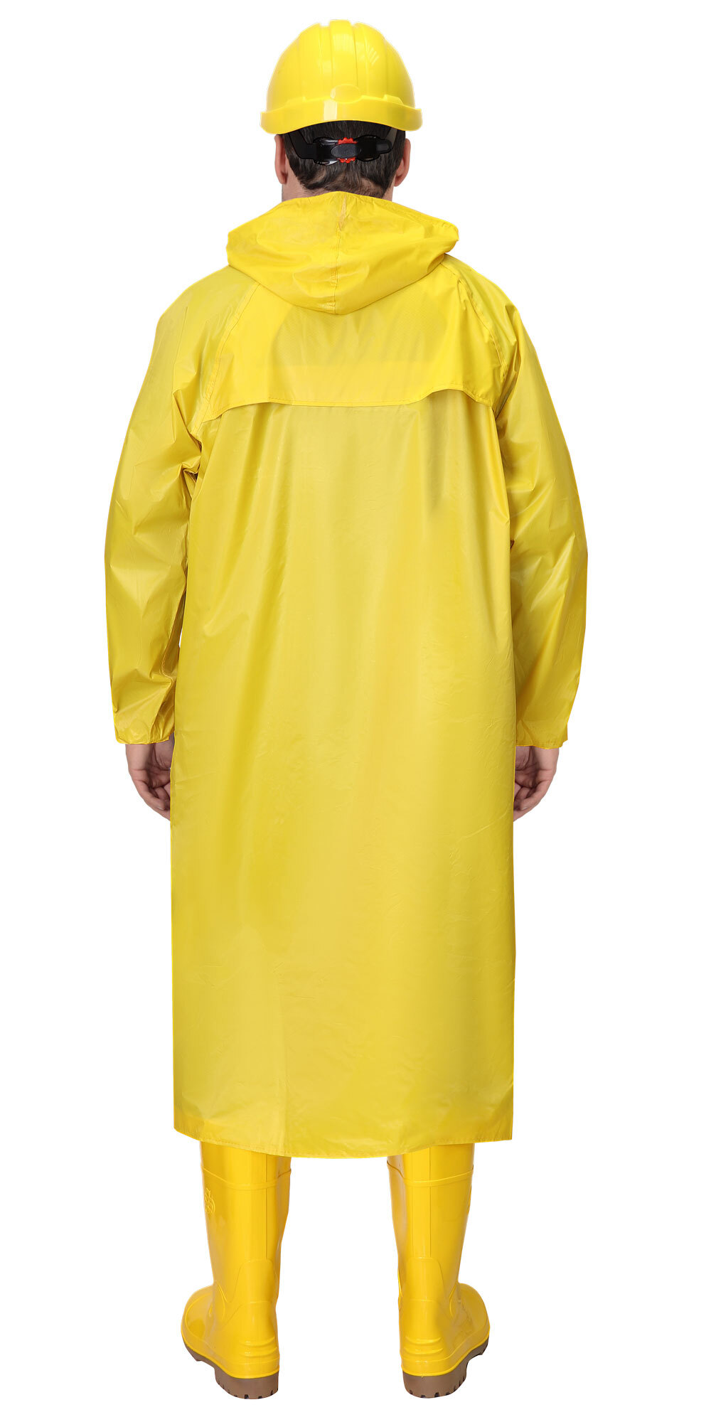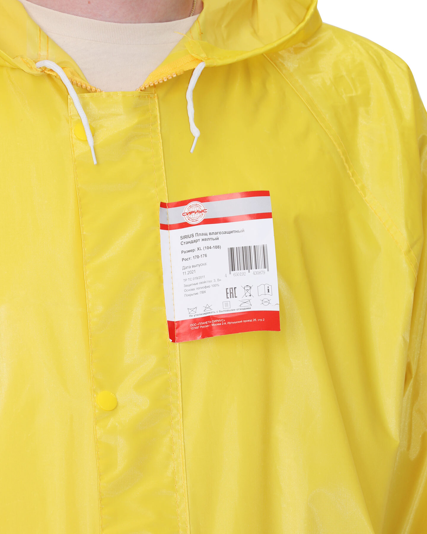 Влагозащитный плащ SIRIUS Стандарт для защиты от дождя, ветра, загрязнений и химических факторов (нефтяных масел). Изготовлен из плотной плащевой ткани с ПВХ покрытием плотностью 210 г/м.кв. Застежка на молнии с дополнительной ветрозащитной планкой на кнопках, что гарантирует высокую защиту от влаги. Проклеенные герметичные швы защищают от влаги и конденсата. Притачной капюшон с регулировкой шнуром. Манжеты на рукавах, обеспечивающие дополнительную защиту от протекания при работе. Вентиляционная кокетка на спине отводит избыточную влагу и создаёт комфорт при движении. Накладные карманы закрываются клапанами. Водоупорность: выше 5000 мм водного столба. -не стирать; -не отбеливать и не хлорировать; -сушить в подвешенном состоянии; -гладить запрещено; -сухая чистка и удаление пятен растворителем запрещены; -температура эксплуатации от +5 до +35.
