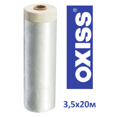 Плёнка защитная укрывная с малярной лентой 3,5 х 20 м представляет собой плотное полиэтиленовое полотно с самоклеящимся малярным скотчем по краям для удобства крепления. Этот высокотехнологичный материал не боится агрессивных жидкостей (краска, растворители, различные смеси), мелкого строительного мусора, влаги и достаточно прочен к деформациям и механическим воздействиям.