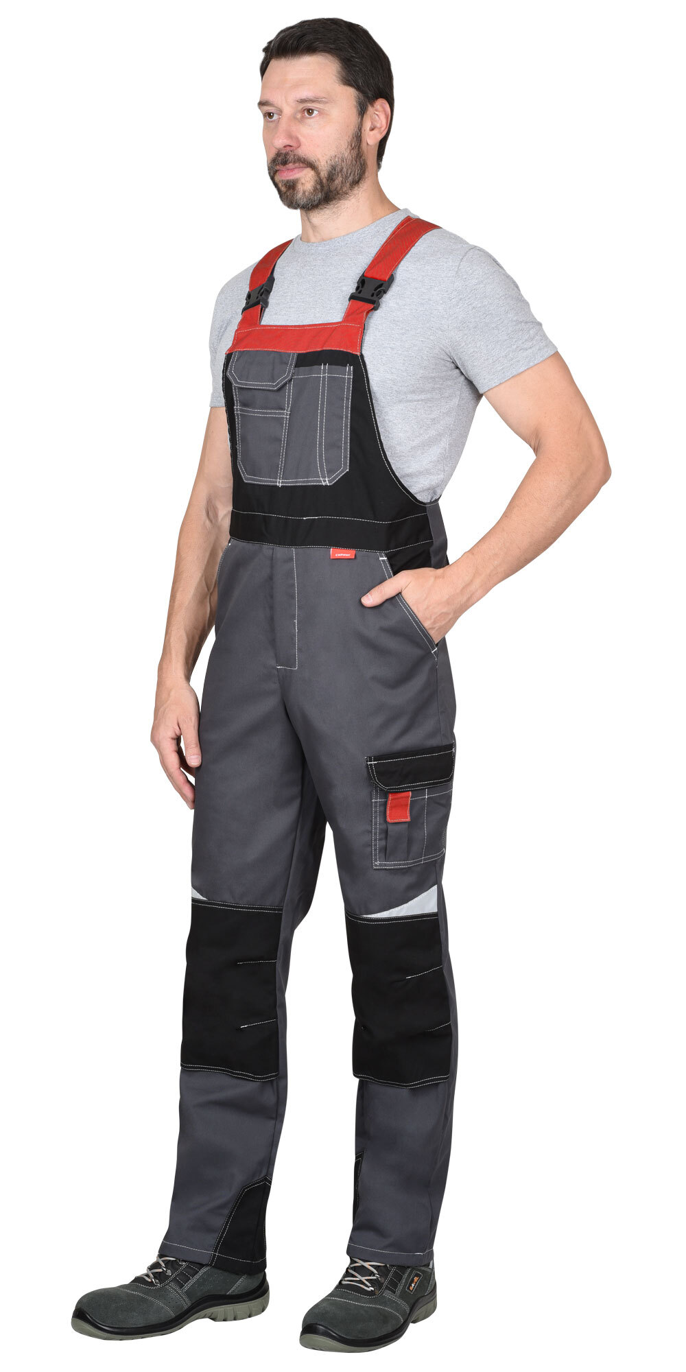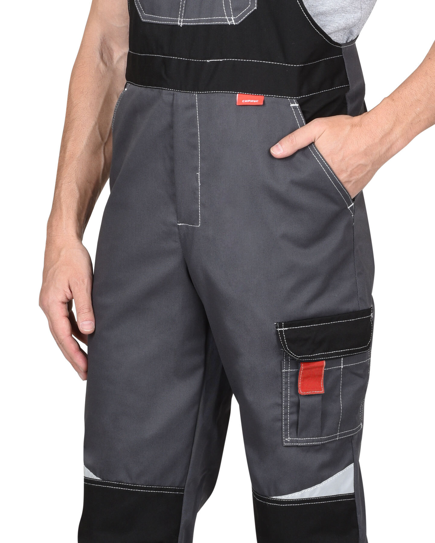 Полукомбинезон с застёжкой гульфика на молнию и застёжкой в боковом шве на пуговицы; с различными многофункциональными карманами; с объемными наколенниками. СОП-50 мм. ГОСТ 12.4.280-2014