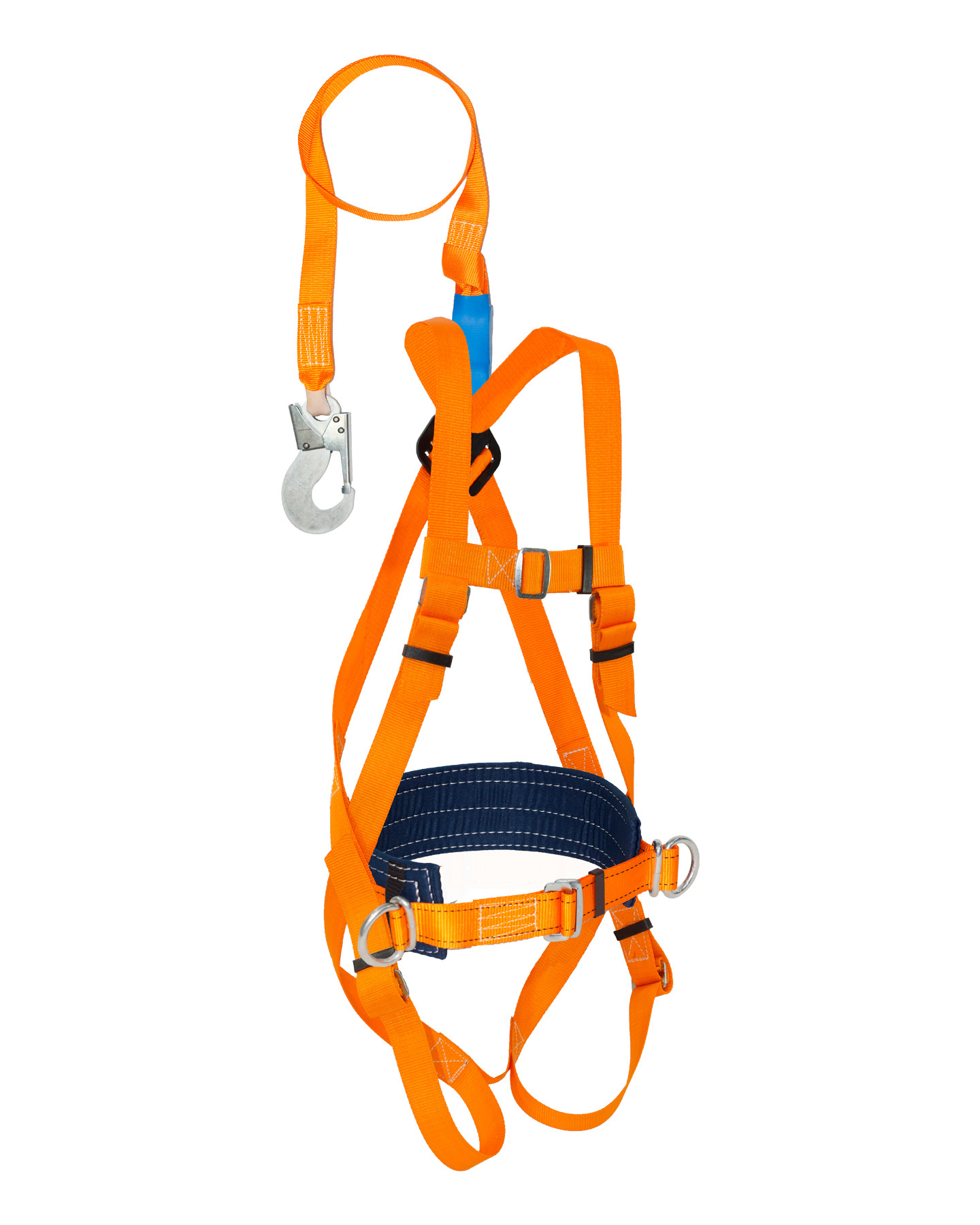 УС 2 аАЖ - Страховочная система с наплечными и набедренными лямками со стропом из ленты с амортизатором. Данная система является принадлежностью личного снаряжения, используется в качестве страховки рабочего на высоте в процессе производства строительных, монтажных, ремонтных и восстановительных работ. Применение: для останова падения работающего при срыве с высоты. Состоит из привязи ремня с пряжкой, наплечных и набедренных лямок, кушака, двух D-колец на поясе (для удержания и позиционирования) и одного на спине и страховочного стропа из полиэфирной ленты с амортизатором. Привязь упакована в водонепроницаемый пакет и содержит паспорт и инструкцию по применению. Соблюдать меры предосторожности, которые могут повлиять на работу стропа и системы, например: острые кромки, режущие, абразивные или климатические воздействия, химические реактивы, маятниковые падения. Название по отмененному ГОСТ Р 12.4.184-95: Пояс предохранительный ПП-2аАЖ Статическая нагрузка: не менее 15 кН (1500 кгс) ГОСТ Р ЕН 363-2007 ГОСТ Р ЕН 358-2008 Обхват пояса: 740-1440 мм