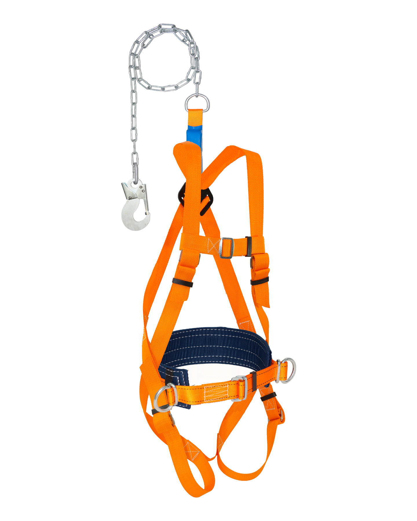 УС 2 аГЖ - Страховочная система с наплечными и набедренными лямками со стропом из металлической цепи с амортизатором. Данная система является принадлежностью личного снаряжения, используется в качестве страховки рабочего на высоте в процессе производства строительных, монтажных, ремонтных и восстановительных работ. Применение: для останова падения работающего при срыве с высоты. Состоит из привязи ремня с пряжкой, наплечных и набедренных лямок, кушака, двух D-колец на поясе (для удержания и позиционирования) и одного на спине и страховочного стропа из металлической цепи с амортизатором. Привязь упакована в водонепроницаемый пакет и содержит паспорт и инструкцию по применению. Соблюдать меры предосторожности, которые могут повлиять на работу стропа и системы, например: электропроводность, абразивные или климатические воздействия, химические реактивы, маятниковые падения. Название по отмененному ГОСТ Р 12.4.184-95: Пояс предохранительный ПП-2аГЖ Статическая нагрузка: не менее 15 кН (1500 кгс) ГОСТ Р ЕН 363-2007 ГОСТ Р ЕН 358-2008 Обхват пояса: 740-1440 мм