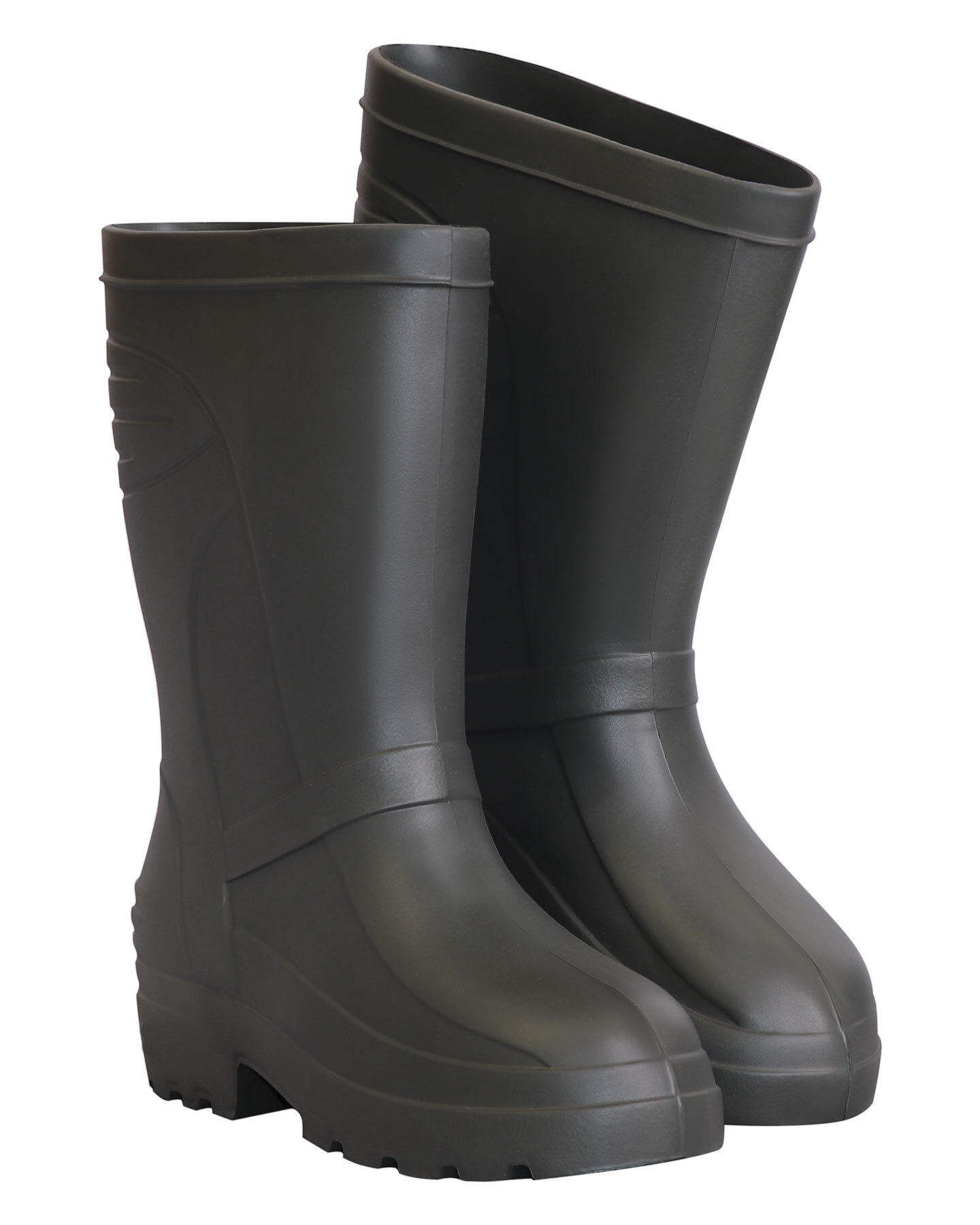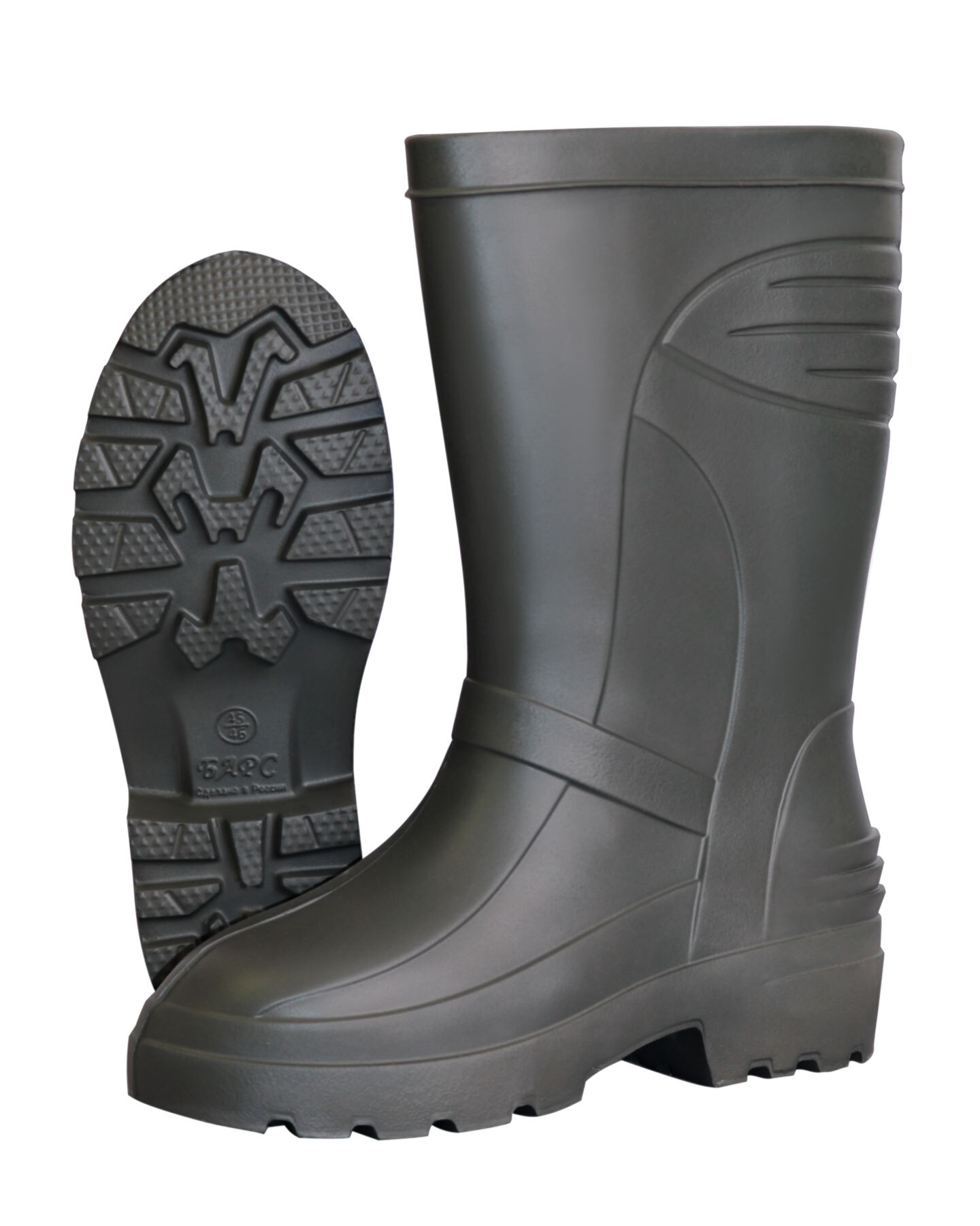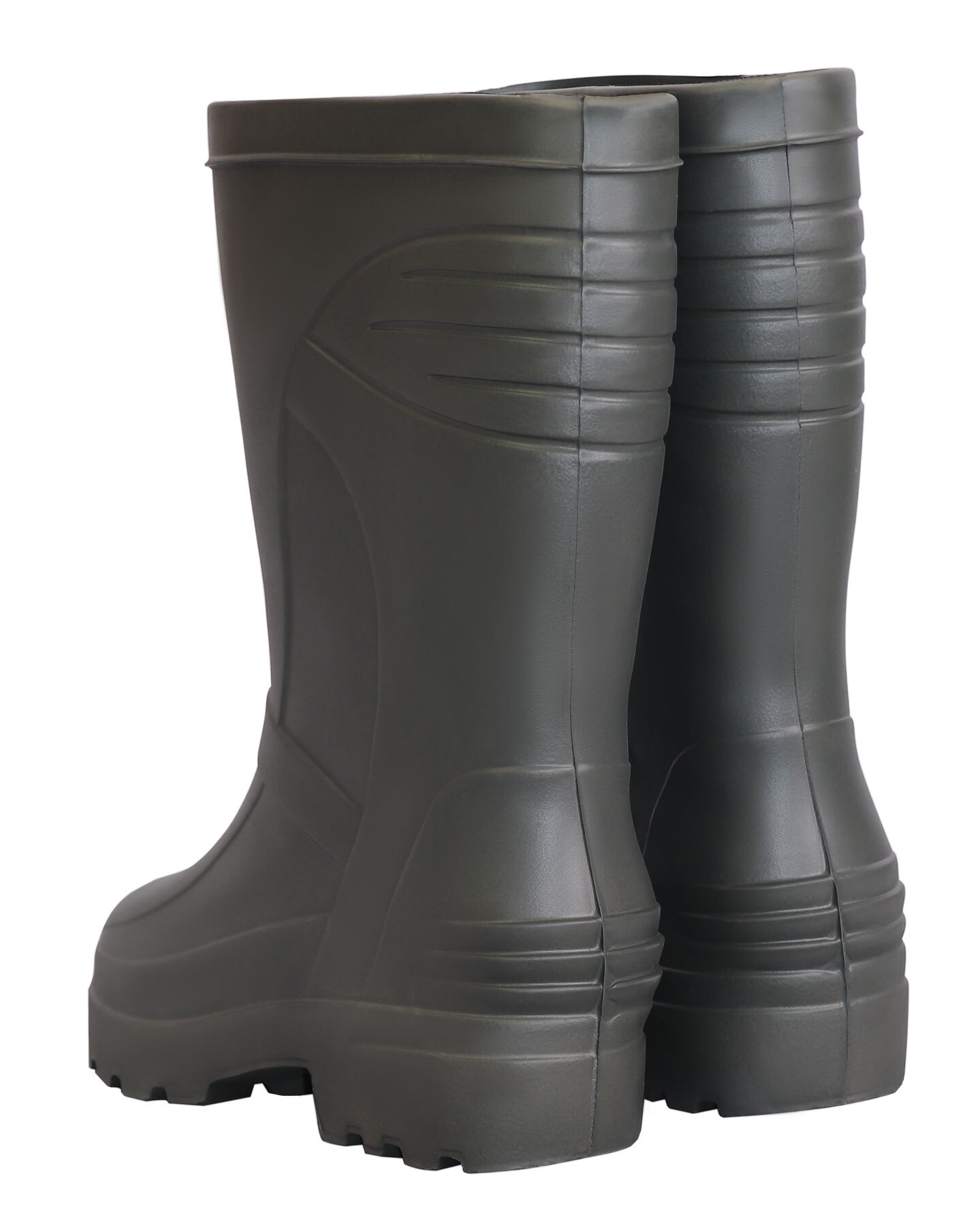Материал сапог абсолютно водонепроницаем. Удобные колодки обеспечивают комфортную носку обуви. Основными характеристиками обуви из ЭВА являются: минимальный вес, полная водонепроницаемость, мягкость, высокая устойчивость к истиранию, а так же смягчение нагрузки на суставы при ходьбе Высота 30-32 см.