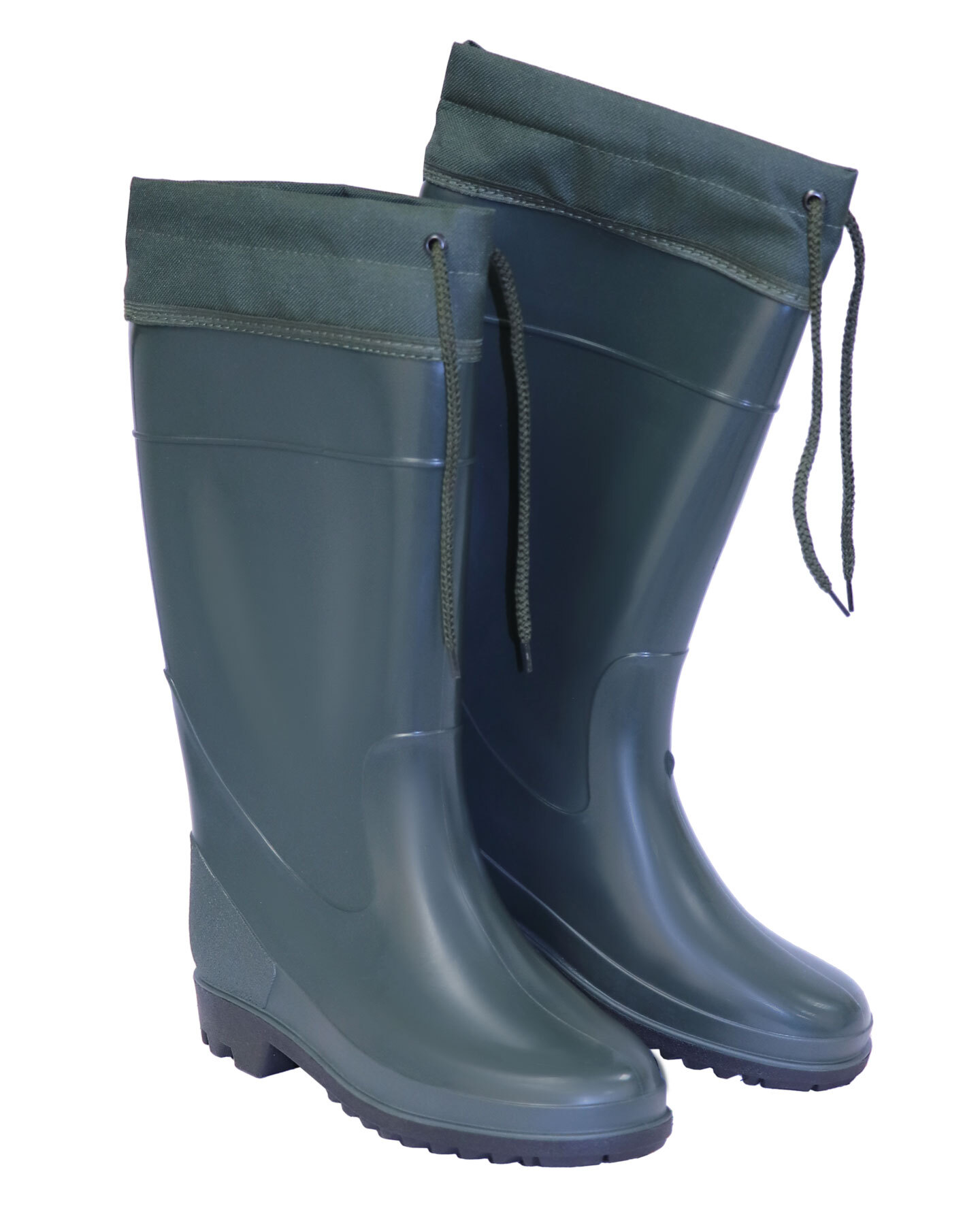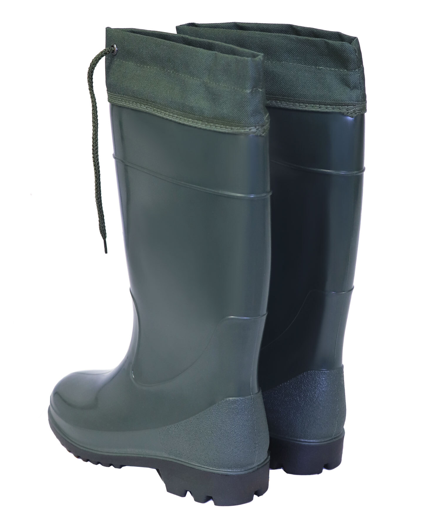 Верх из ткани с водоотталкивающей пропиткой. Сверху затягивается шнуром, который препятствует проникновению грязи и воды внутрь сапог. Размеры: 40-46.
