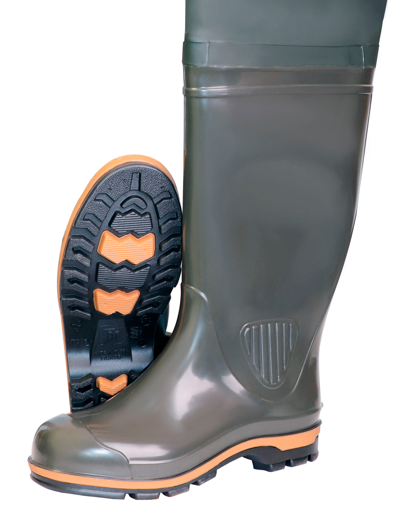 Сапоги КЩС МБС из ПВХ с удлинёнными голенищами из маслобензостойкого винитола, устойчивого к действию любых растворителей. Надставка изготовлена из высококачественной ткани с ПВХ покрытием (винитол). Формованные наколенники усилены дополнительным слоем материала и защищают от истирания. Крепление голенища к поясному ремню осуществляется при помощи регулируемых по длине строп. Герметизация соединений производится сваркой токами высокой частоты по технологии «двойного шва». Базовый сапог изготавливается из высококачественного пластиката собственного производства, колодка модели разработана в Италии и сочетает в себе анатомически выверенный профиль с высокой эргономичностью. Защитные рельефные усилители на внешней и внутренней стороне голенища предохраняют щиколотки от боковых ударов. На задней части голенища в области пятки расположен выступ-шпора высотой 6 мм для удобства снятия обуви. Сапог выполнен по технологии трехкомпонентного литья с применением дополнительного промежуточного слоя для улучшения амортизирующих, антистатических и теплоизолирующих свойств. Подошва модели обладает самоочищающимся протектором с развитыми грунтозацепами высотой до 8 мм и гарантированно защищает от скольжений по мокрым и зажиренным поверхностям. Подходят для работ в системах коммуникаций. Защитные свойства: В, З, Нс, Нм, К 80, Щ 50, См, Сж. Высота сапога 90 см. Размерный ряд: с 37 по 47