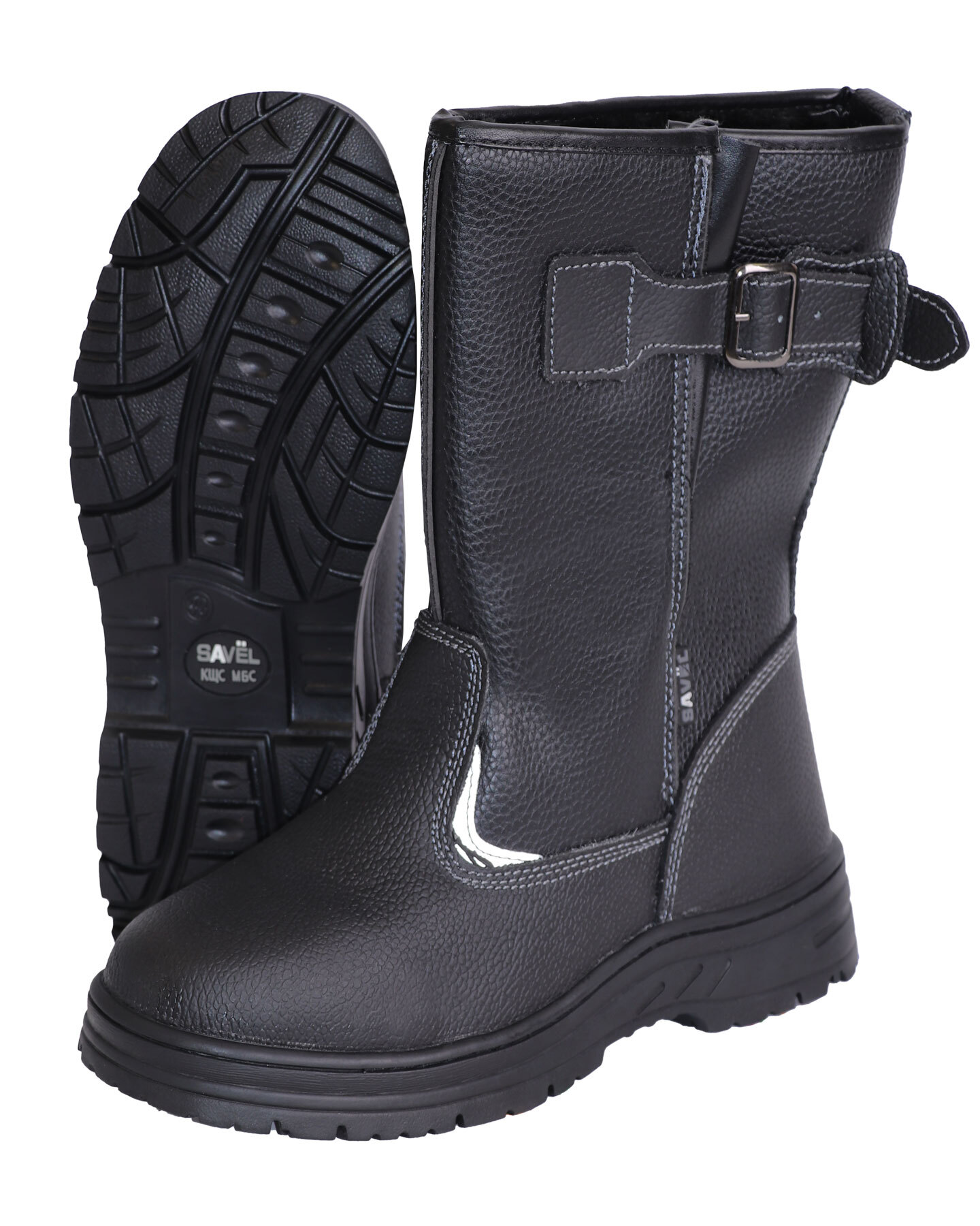 Практичные рабочие сапоги, сочетающие в себе современные инновационные технологии, натуральные материалы и продуманную защиту. Комфортная обувь для всех видов деятельности. Верх обуви (голенище) выполнен из износостойкой и высококачественной искусственной кожи, которая не уступает по мягкости и внешнему виду натуральной, а усиленные союзка и задник из натуральной кожи обеспечивают дополнительную прочность и комфорт. Оба материала обработаны специальным защитным покрытием, которое надежно оберегает обувь от общепроизводственных загрязнений и имеет масловодоотталкивающую пропитку. Инновационный синтетический утеплитель (искусственный мех) повторяет свойства натурального меха: прекрасно удерживает тепло, обеспечивает воздухообмен и сохраняет комфортный микроклимат внутри обуви. Этот материал создает эффект термококона - ноги остаются в тепле даже без использования натуральных материалов. Важное достоинство этой обуви – двойной (комбинированный) метод крепления, при котором к химическому соединению деталей добавляется механический. Это придает дополнительную прочность соединению верха обуви и подошвы, улучшает эксплуатационные свойства и прочность крепления. Рабочая обувь клеепрошивного метода крепления универсальна в назначении для различных отраслей промышленности, а также для повседневной носки. Нитрил — синтетический каучук (резина). Характеризуется отличной устойчивостью к воздействию высоких температур (при кратковременном контакте подошвы с нагретой до +300°С поверхностью) в соответствии с ГОСТ 12.4.032-95 «Обувь специальная с кожаным верхом для защиты от действия повышенных температур», стойкостью к маслам, нефти и нефтепродуктам, кислотам и щелочам слабой концентрации, обладает высокой устойчивостью к скольжению на обледенелых поверхностях. Так как любая работа сопряжена с риском падения тяжелых предметов на ноги, будь то случайно сброшенный груз или сдавливание крупногабаритным объектом, эта обувь снабжена защитным подноском из металла с максимальной ударной нагрузкой (МУН) 200 джоулей. За счет этого обувь получает большое значение удельного сопротивления деформации, что обеспечивает наибольшую безопасность эксплуатации без снижения характеристик комфорта и удобства ношения.