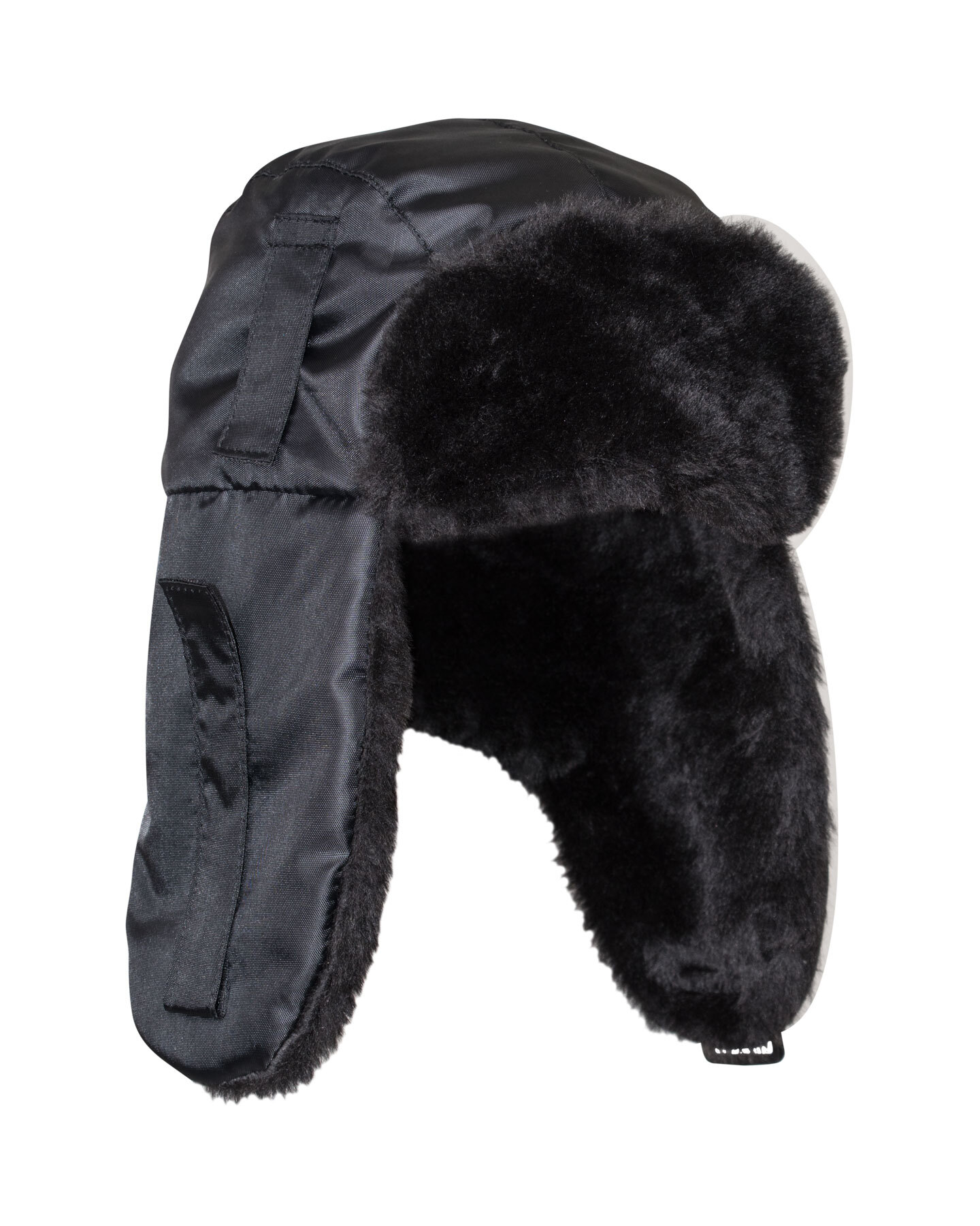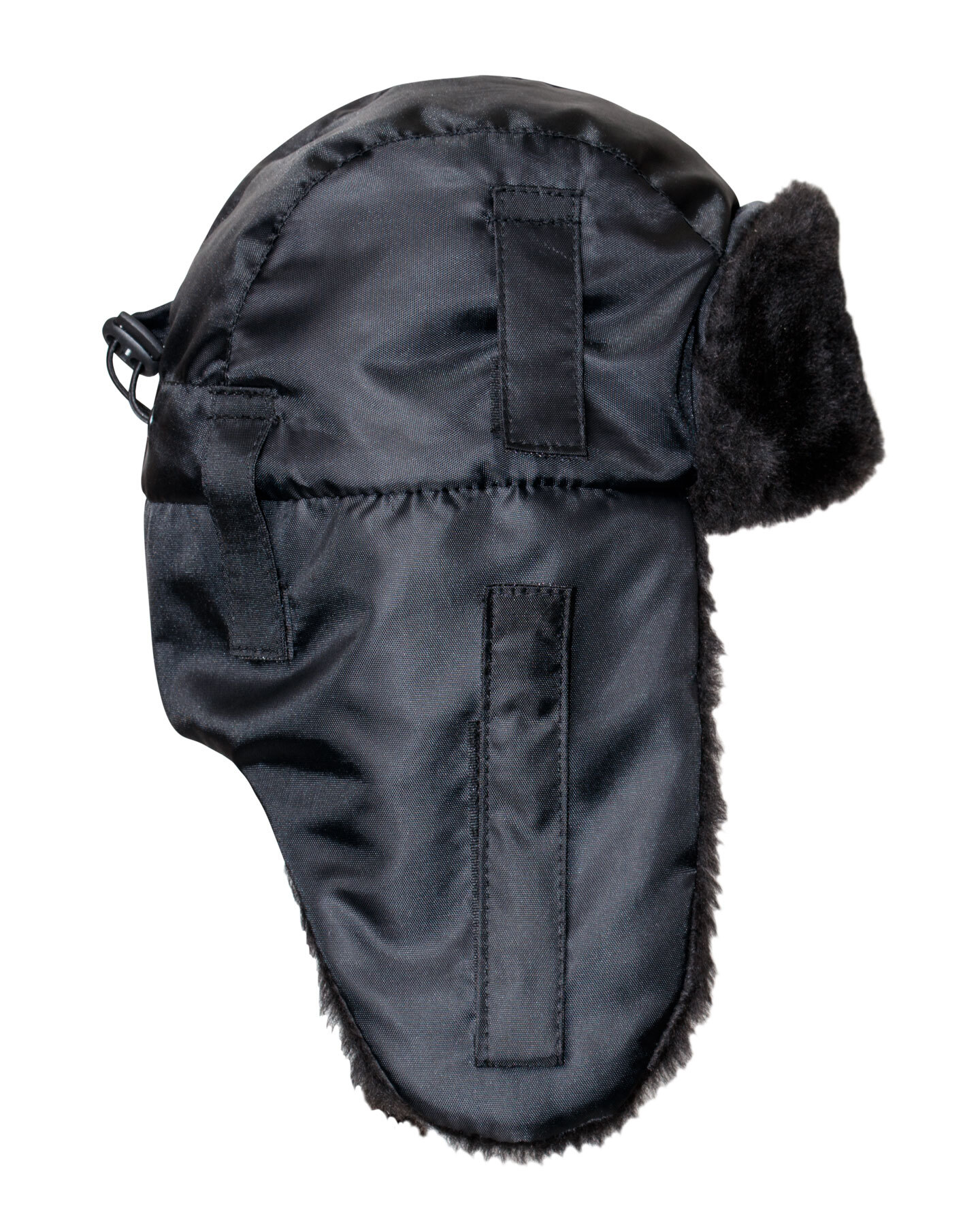 Шапка-ушанка зимняя черная с искусственным мехом черного цвета. В затылочной части объем регулируется за счет резинки и фиксатора. На боковых частях шлевки для крепления каски. Ткань верха - Оксфорд 210 PU 1000 Подкладка - Флис 180г/кв.м, мех искусственный 500 г/кв.м Утеплитель - Синтепон 120г/кв.м Размеры: 54-56, 57-59, 60-62 ГОСТ 32118-2013 Сделано в России