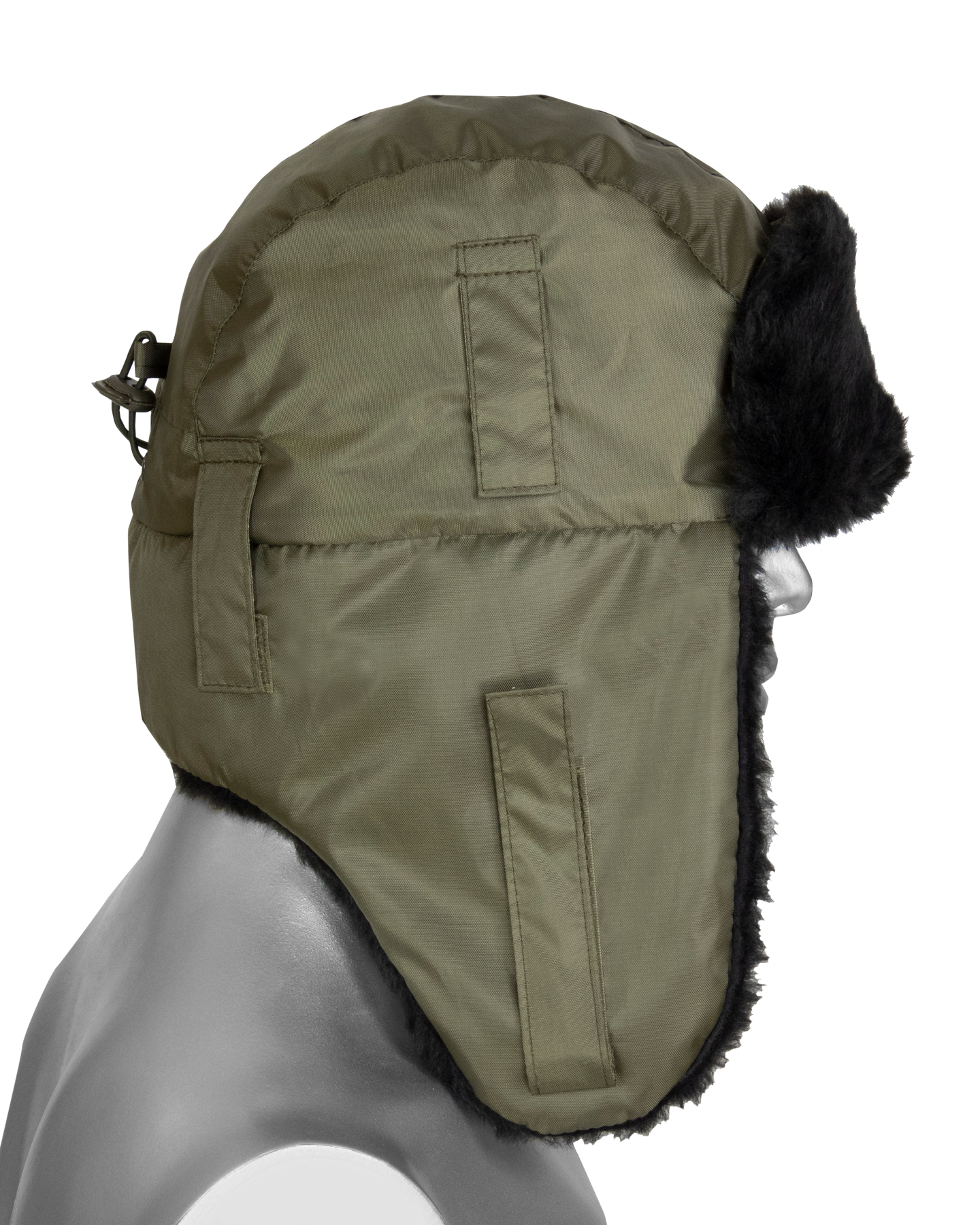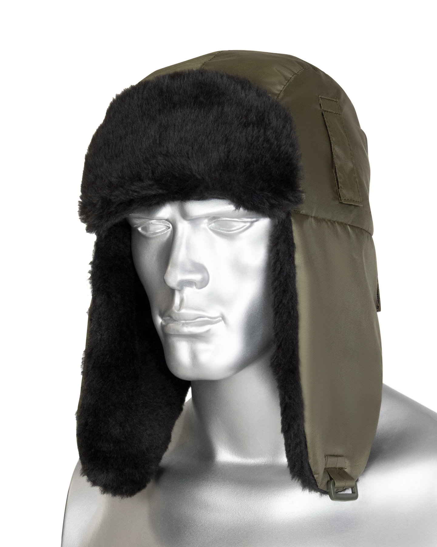 Шапка-ушанка зимняя хаки с искусственным мехом черного цвета. На затылочной части резинка для более плотного прилегания к голове. На боковых частях шлевки для крепления каски. Ткань верха - Оксфорд 210 PU 1000 Подкладка - Флис 180г/кв.м, мех искусственный 500 г/кв.м Утеплитель - Синтепон 120г/кв.м Размеры: 54-56, 57-59, 60-62 ГОСТ 32118-2013 Сделано в России