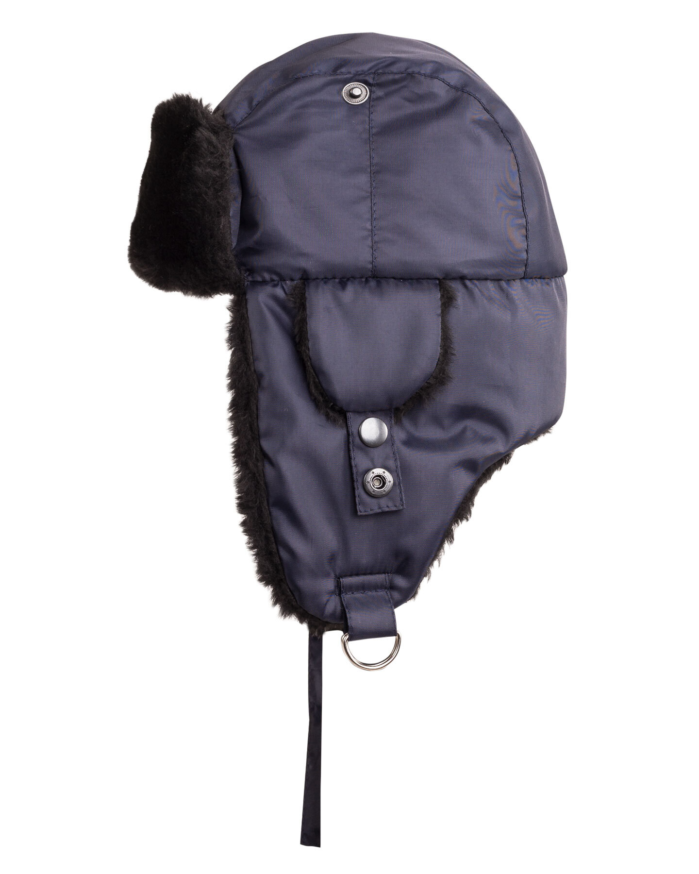 Шапка-ушанка зимняя темно-синяя со слуховыми отверстиями, защищенные меховым клапаном. Ткань верха - Оксфорд 210 PU 1000 Подкладка - Флис пл. 260 г/кв.м, мех искусственный 510 г/кв.м Утеплитель - Холлофайбер 150г/кв.м Размеры: 54-56, 57-59, 60-62 ГОСТ 32118-2013 Сделано в России