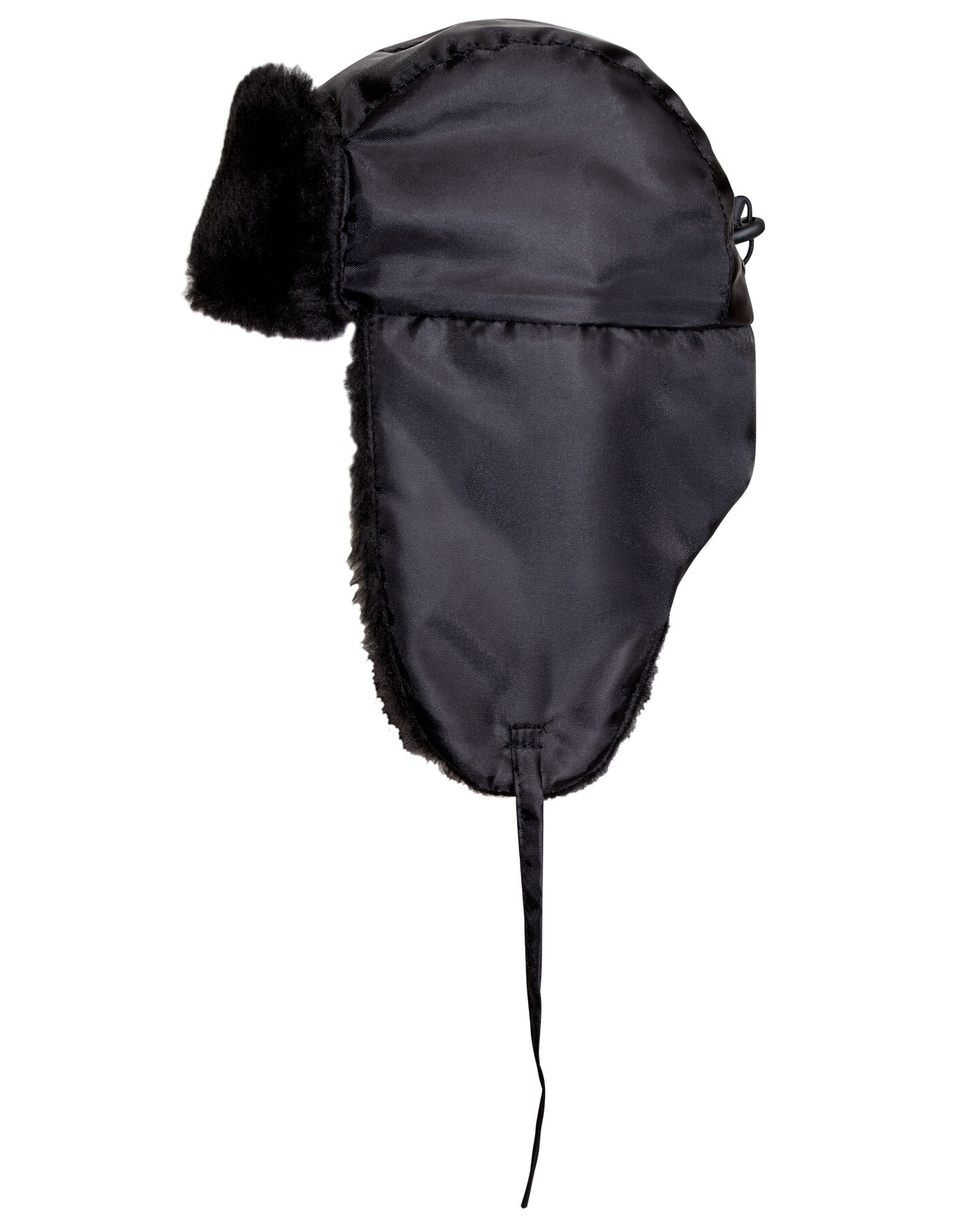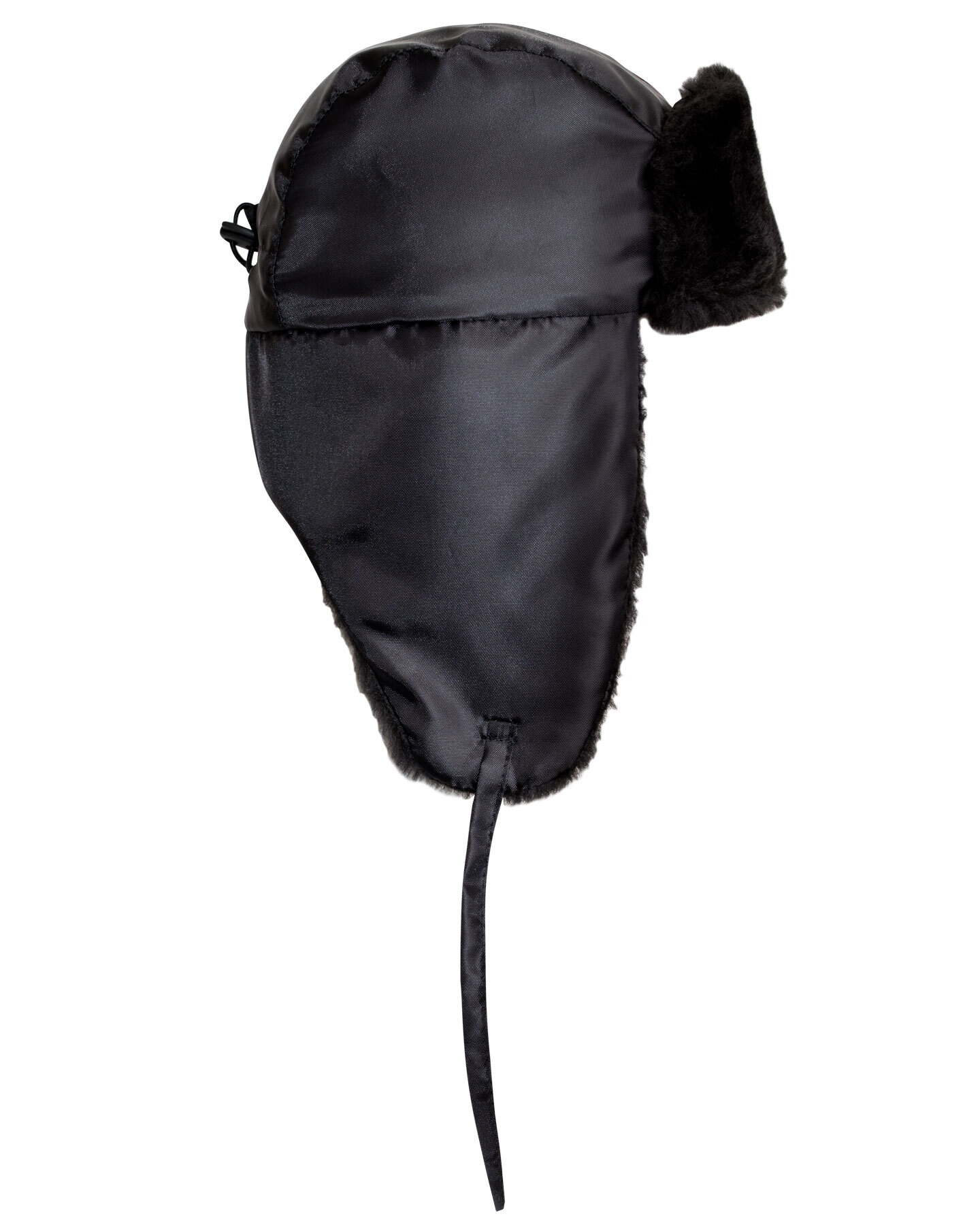 Шапка-ушанка зимняя черная с искусственным мехом черного цвета. В затылочной части объем регулируется за счет резинки и фиксатора. Ткань верха - Оксфорд 210 PU 1000 Подкладка - Флис 180г/кв.м, мех искусственный 500 г/кв.м Утеплитель - Синтепон 120г/кв.м Размеры: 54-56, 57-59, 60-62 ГОСТ 32118-2013 Сделано в России
