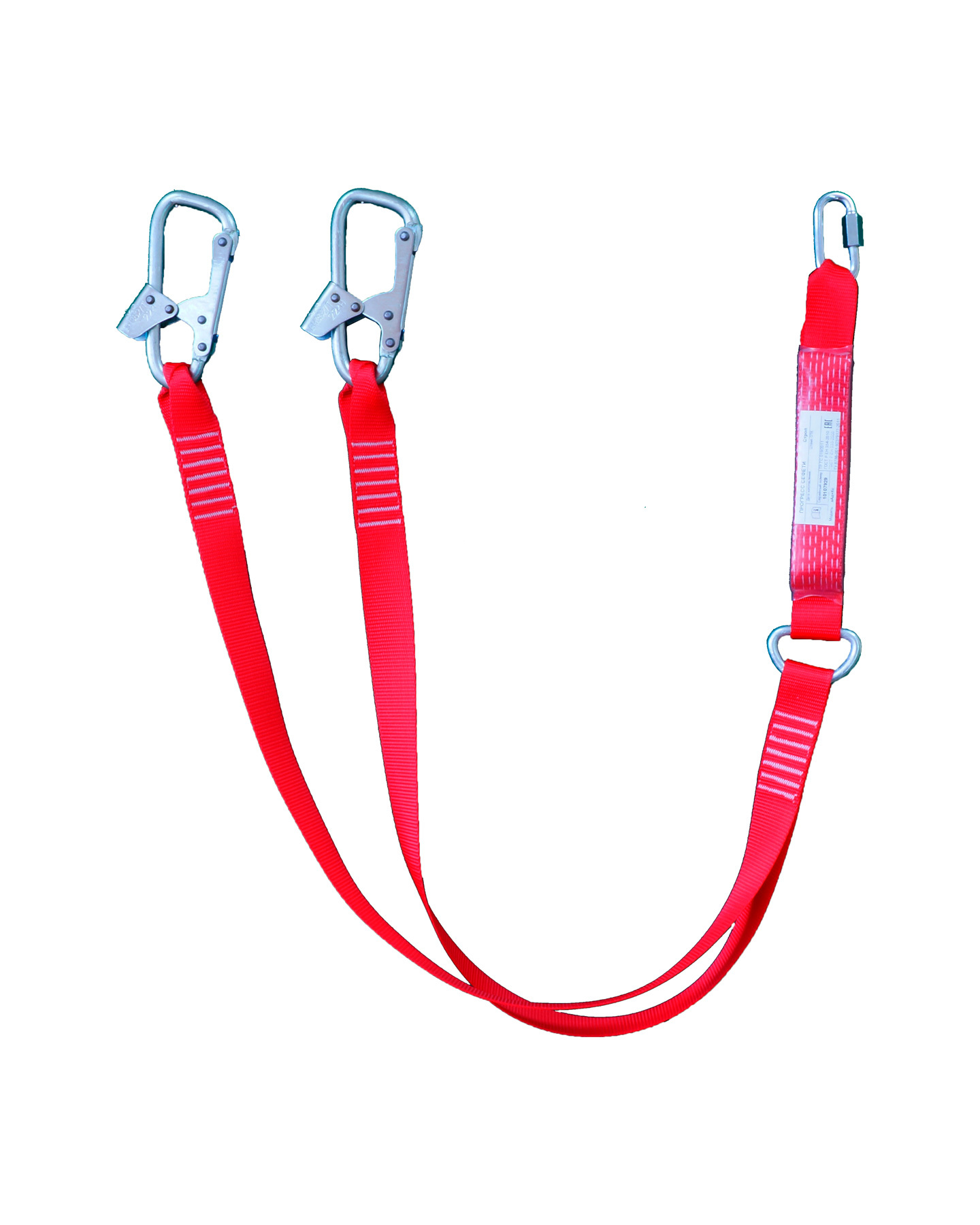 Строп аАд+Кс - страховочный двойной (двуплечий) строп из полиэфирной ленты с амортизатором, двумя монтажными и одним соединительным карабином. Назначение: для самостраховки и останова падения рабочего при срыве с высоты. Строп упакован в водонепроницаемый пакет и содержит паспорт и инструкцию по применению. Длина стропа: 1,45 м +\- 50 мм Расккрытие монтажного карабина (зев): 25 мм Ширина ленты: 36 мм Статическая нагрузка: не менее 15 кН (1500 кгс) ГОСТ Р ЕН 354-2010, ГОСТ Р ЕН 355-2008