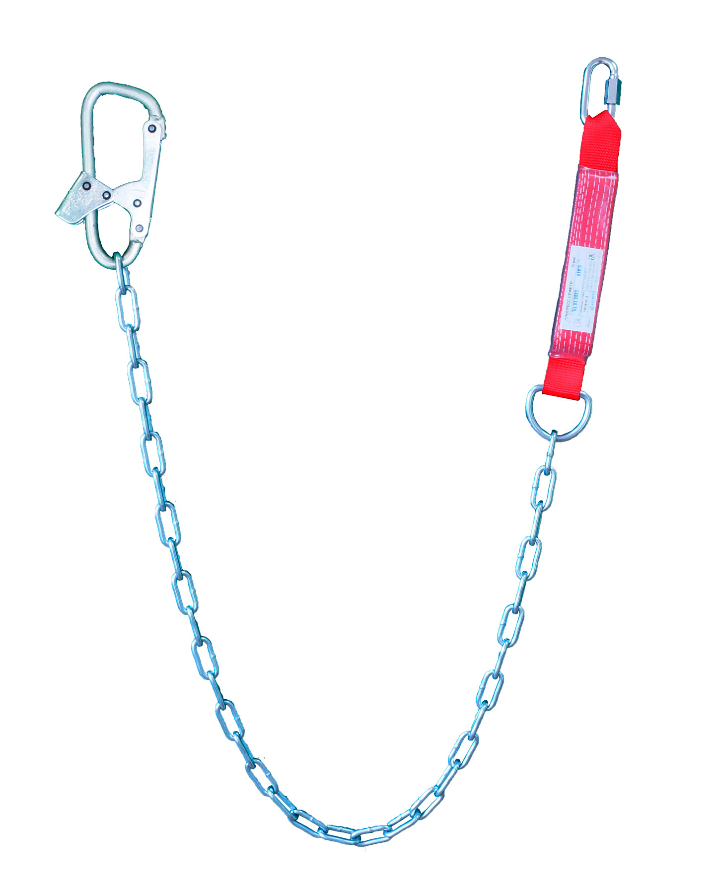 Строп аГ+Кс - страховочный строп из металлической цепи с амортизатором, монтажным и соединительным карабином. Назначение: для самостраховки и останова падения рабочего при срыве с высоты. Строп упакован в водонепроницаемый пакет и содержит паспорт и инструкцию по применению. Длина стропа: 1,45 м +\- 50 мм Расккрытие монтажного карабина (зев): 25 мм Статическая нагрузка: не менее 15 кН (1500 кгс) ГОСТ Р ЕН 354-2010, ГОСТ Р ЕН 355-2008