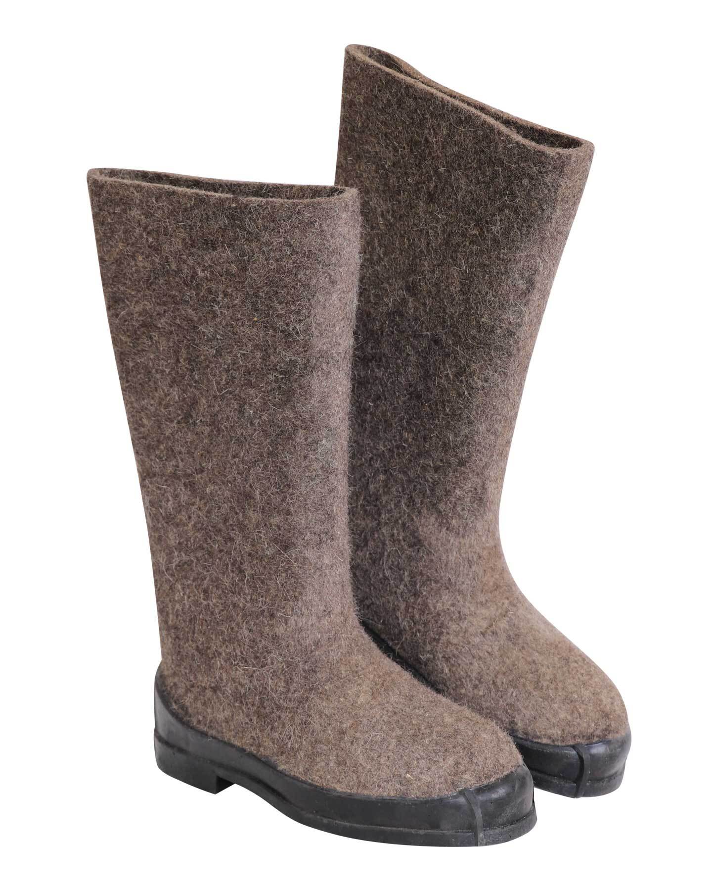100%-грубая шерсть. Прессовый метод крепления подошвы. Размеры: 36(23) - 47(34). ГОСТ 18724-88.