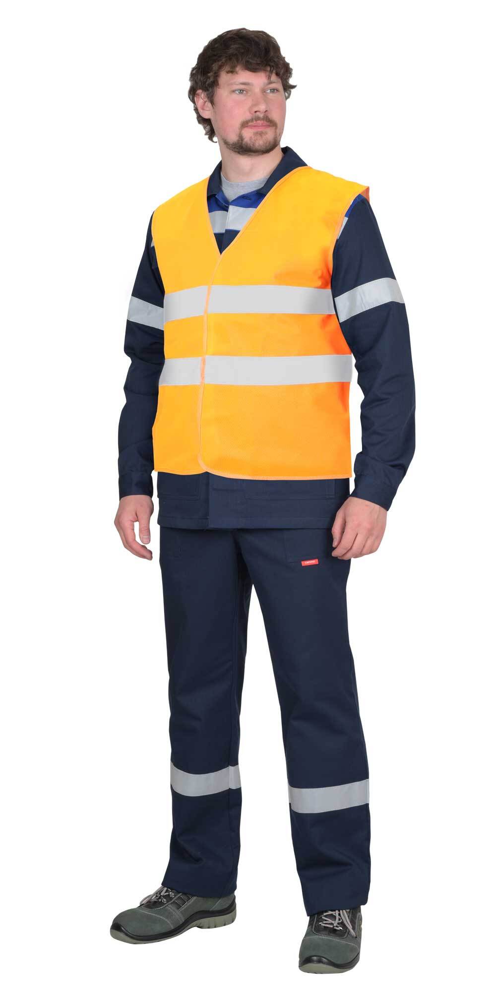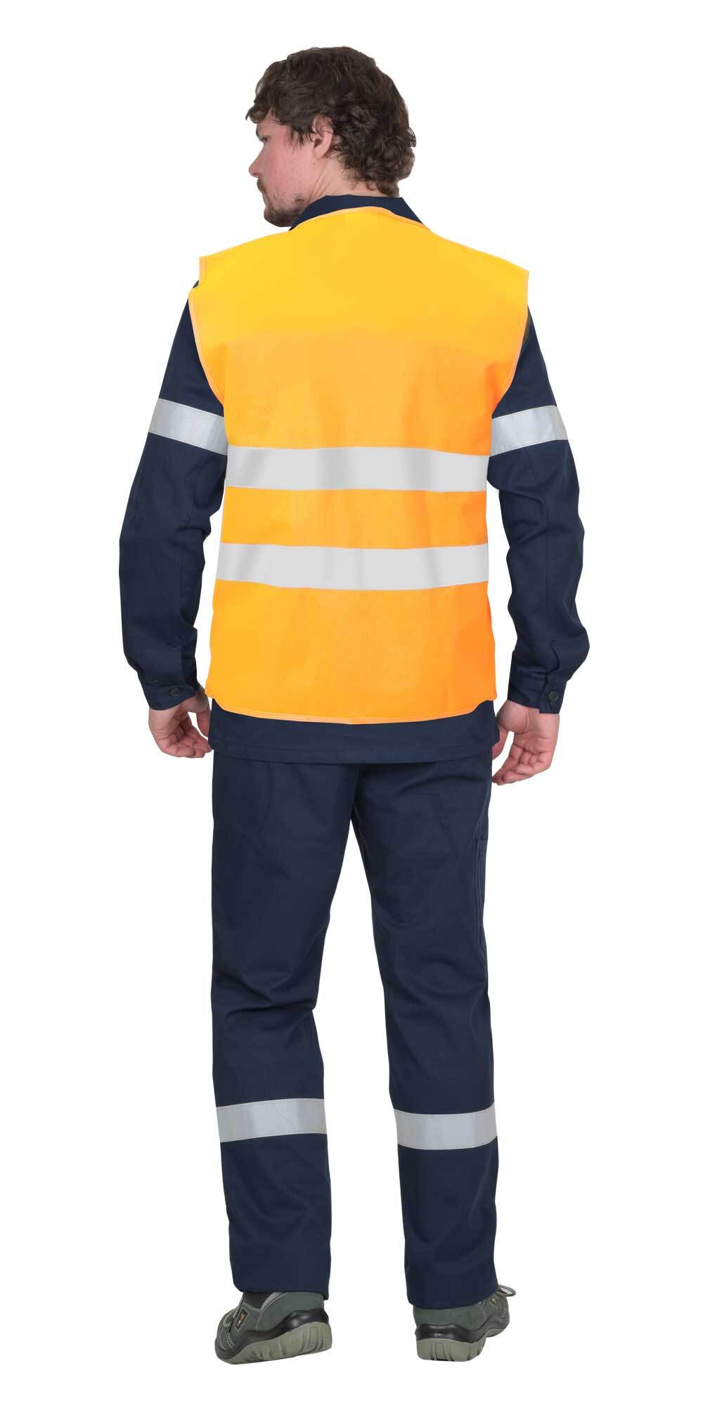 Жилет сигнальный SIRIUS повышенной видимости для безопасности сотрудников в дневное и темное время суток. 1 класс защиты. Изготовлен из трикотажного полотна плотностью 100 г/кв.м с 2 горизонтальными лентами СОП (ширина 50 мм) и центральной застежкой на липкую ленту велькро.